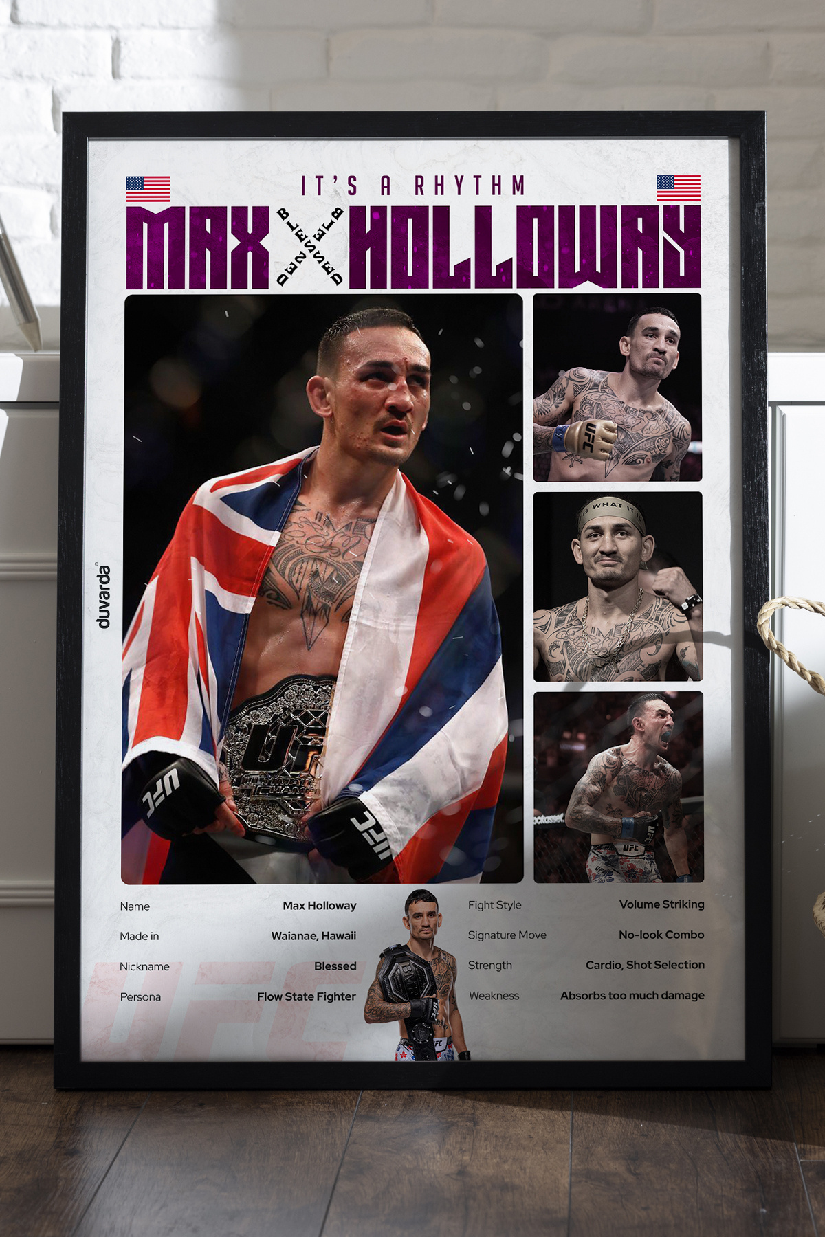 Duvarda Max Holloway UFC Siyah Ahşap Çerçeveli Dekoratif Dövüş Duvar Tablosu