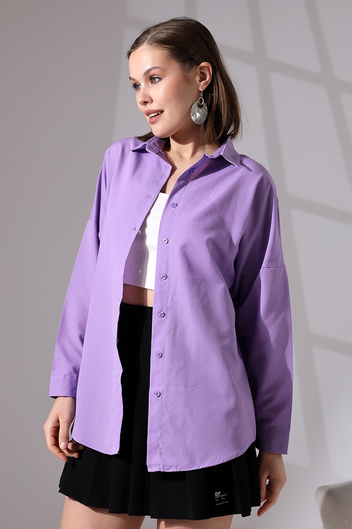 DWOZ Kadın Açık Lila Oversize Uzun Basic Gömlek Özellikleri