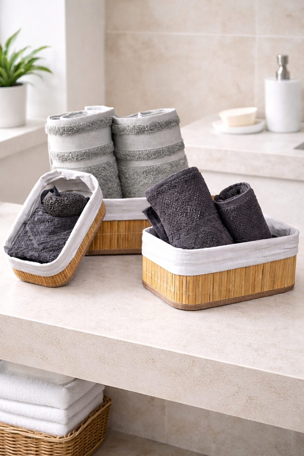 EcoVibe Bambu Üçlü Sepet