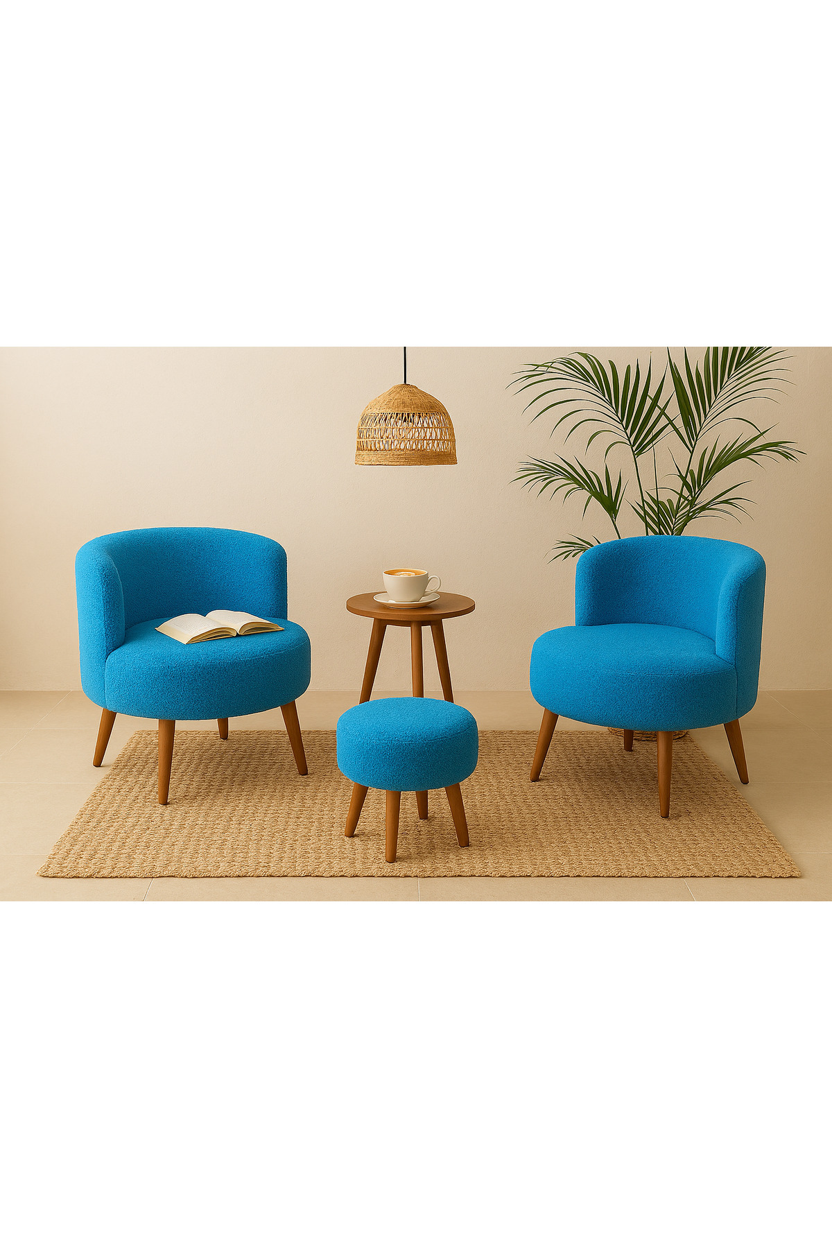 eda hacıoğlu edam bedding group Mavi Çay Seti İkili Koltuk Berjer ve Puf Takımı (Salon, Balkon, Ofis) 3'Lü Takım