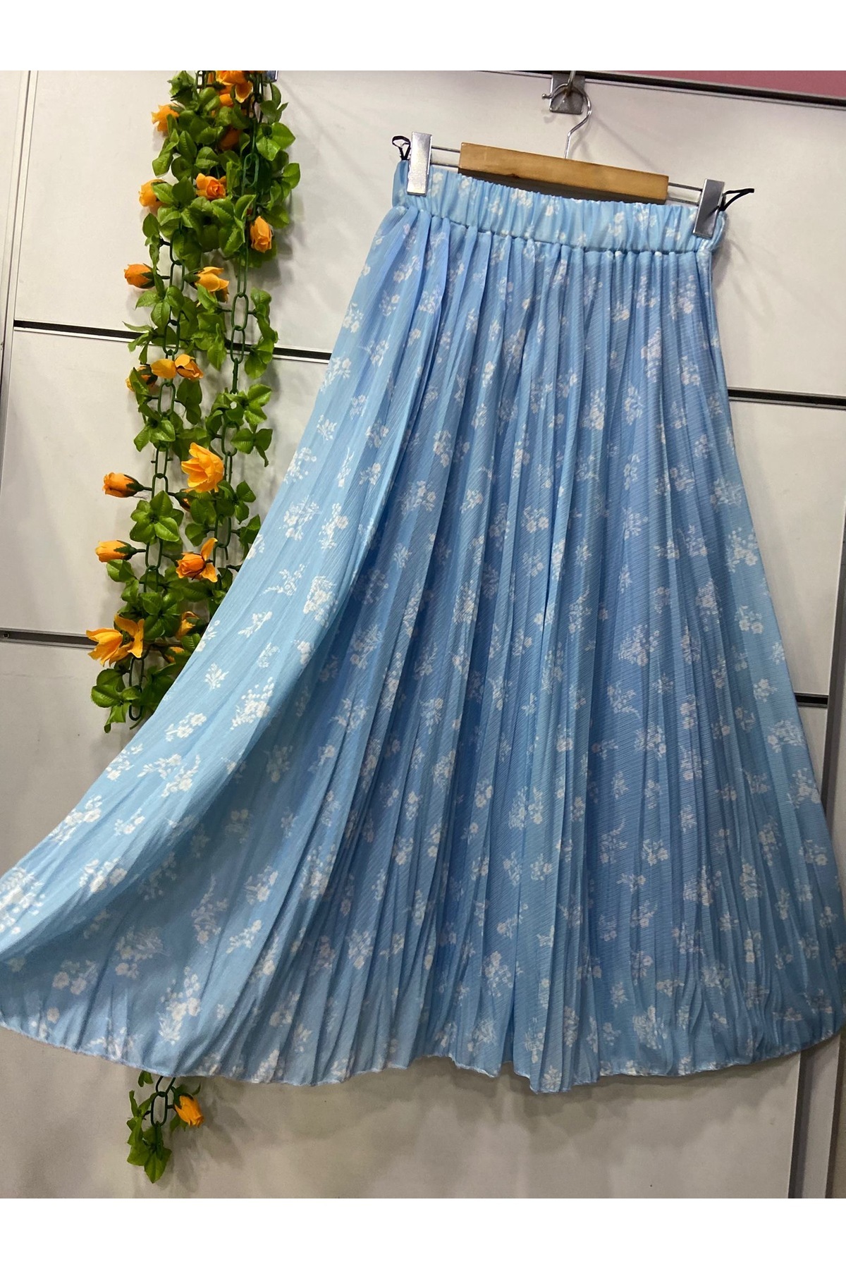 edu collection Şifon çiçekli bohem ÇAN etek astarlı mavi