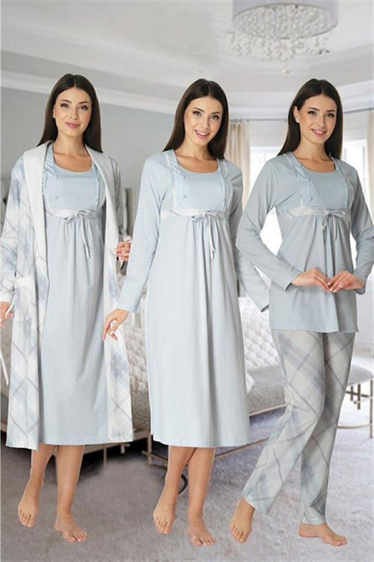 Effort Pijama Freya Effort Lohusa Hamile Sabahlık Pijama Takımı Gecelik 4'lü Set