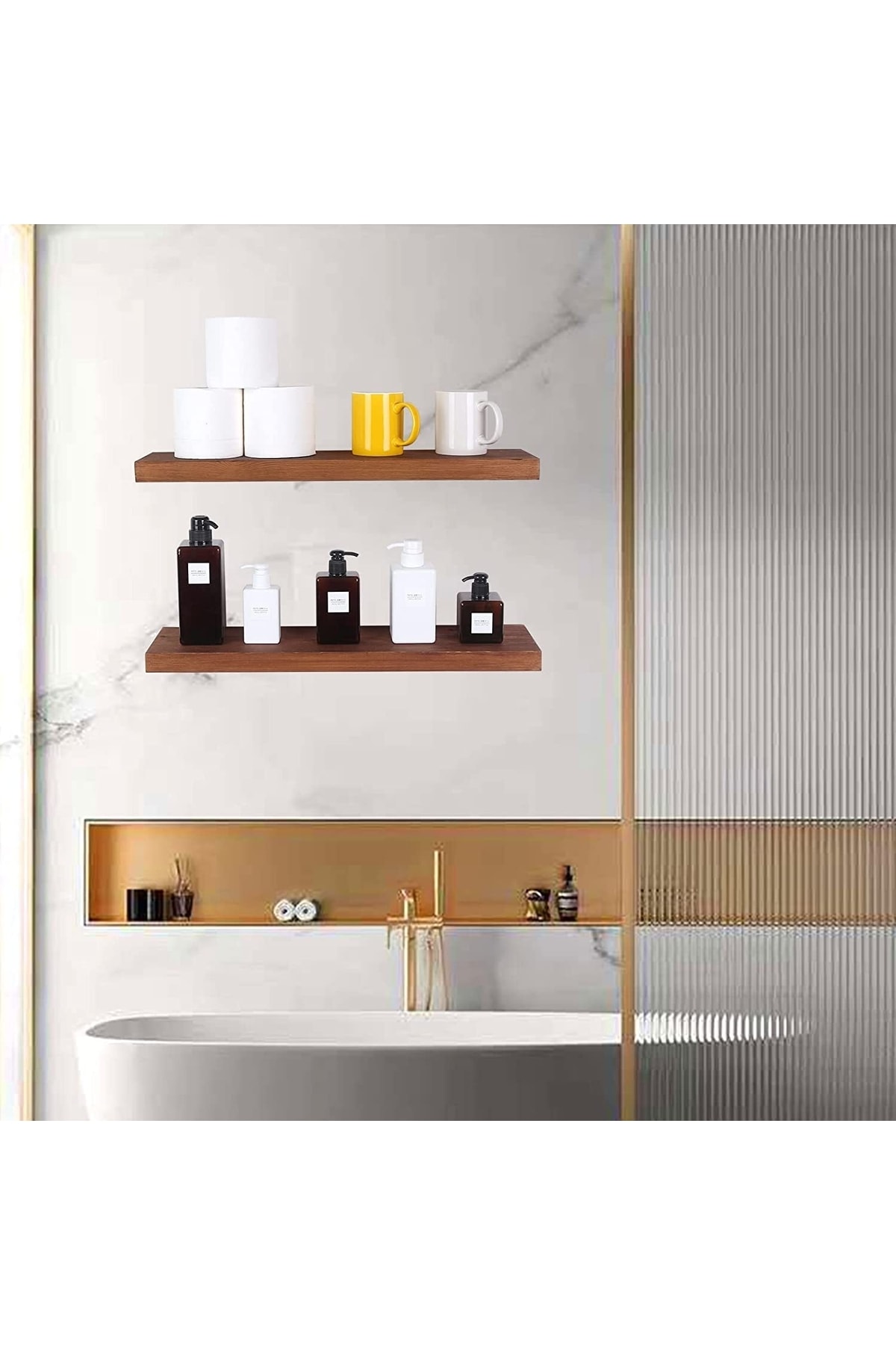 Egecan Mobilya Ceviz Duvar Rafı Uçan Raf Gizli Raf Ahşap Duvar Rafı