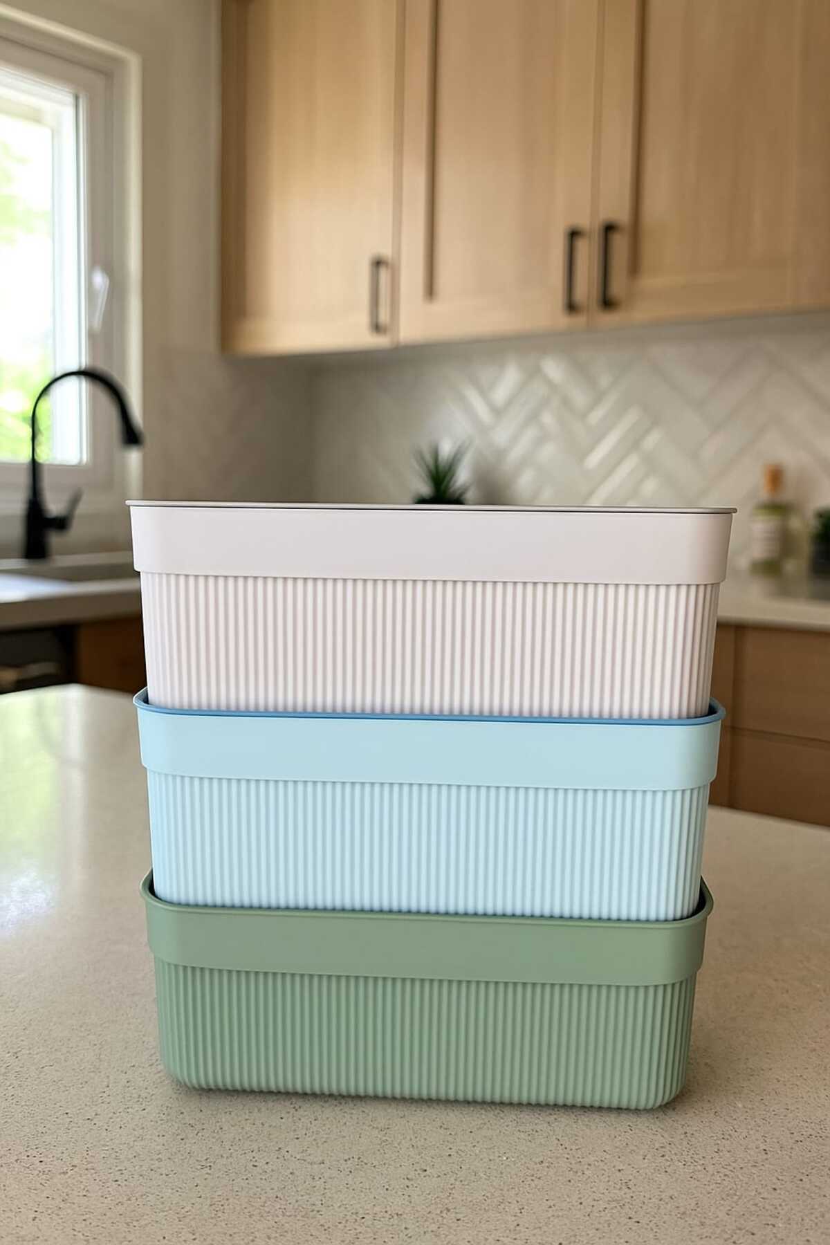 Egem Home 3 Renkli Kapaklı Saklama Kabı Seti 3 Lt