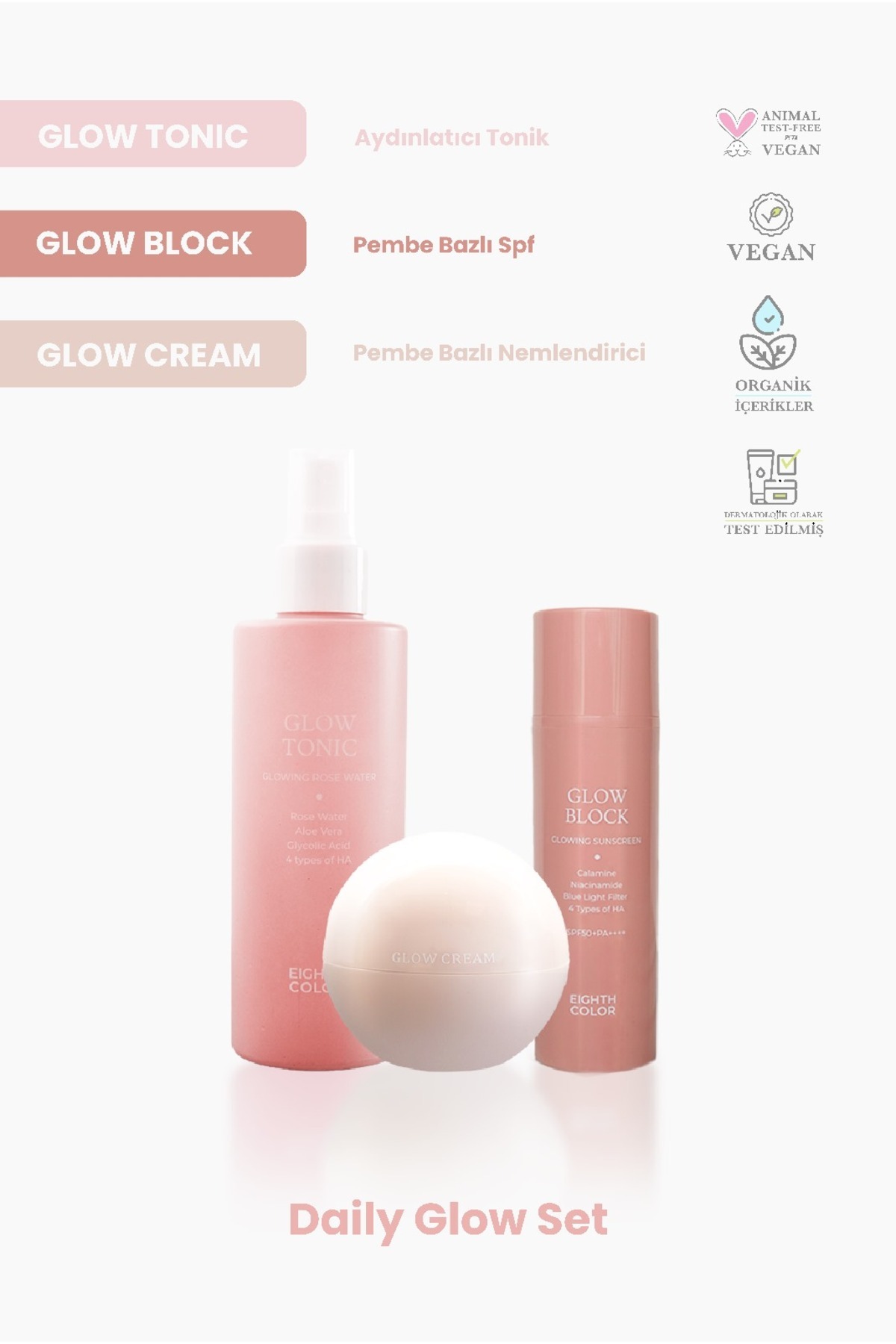 EIGHTH COLOR Daily Glow Set: Glow Tonic 200ml + Glow Block 50ml + Glow Cream 50ml Özellikleri