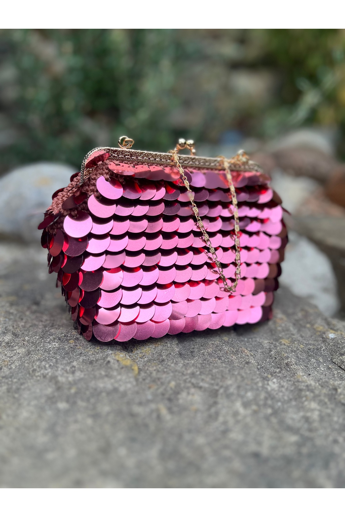 EL YAPIMI Gül Kurusı Pullu Çanta Özellikleri