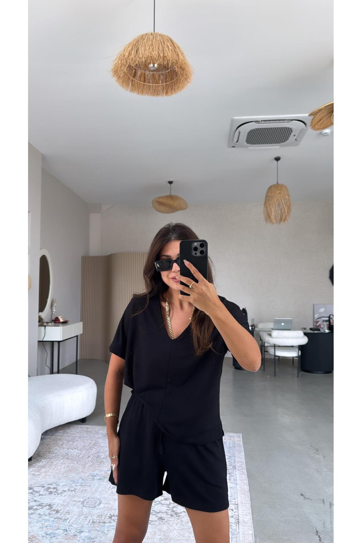 Buket Teke Μαύρο σορτς μπλούζα Modal Σετ