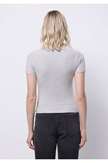 Slim Fit Stand Collar Απλό γυναικείο μπλουζάκι με κοντό μανίκι σε γκρι χρώμα