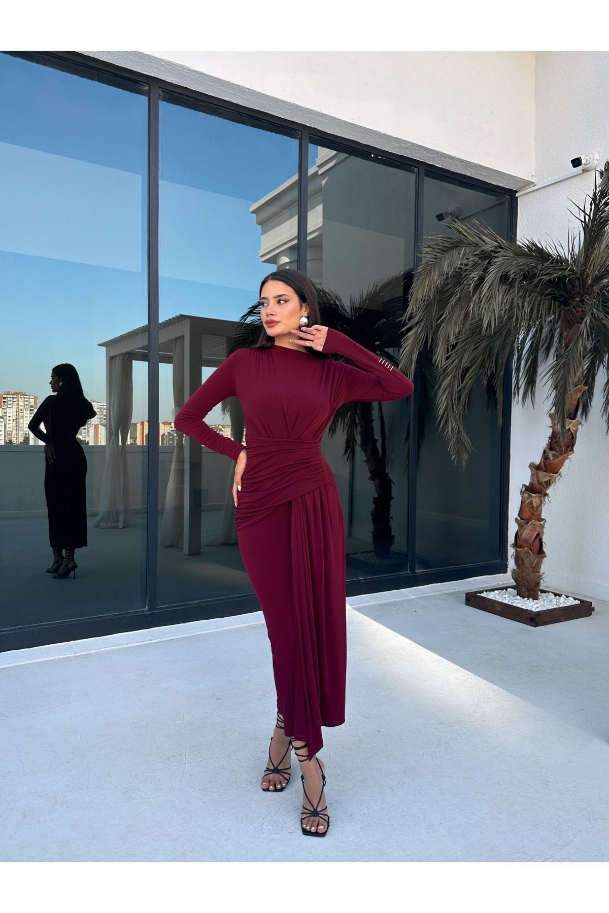 Προτάσεις για Claret Red Basic ντραπέ φόρεμα από την ESRAHELVACI
