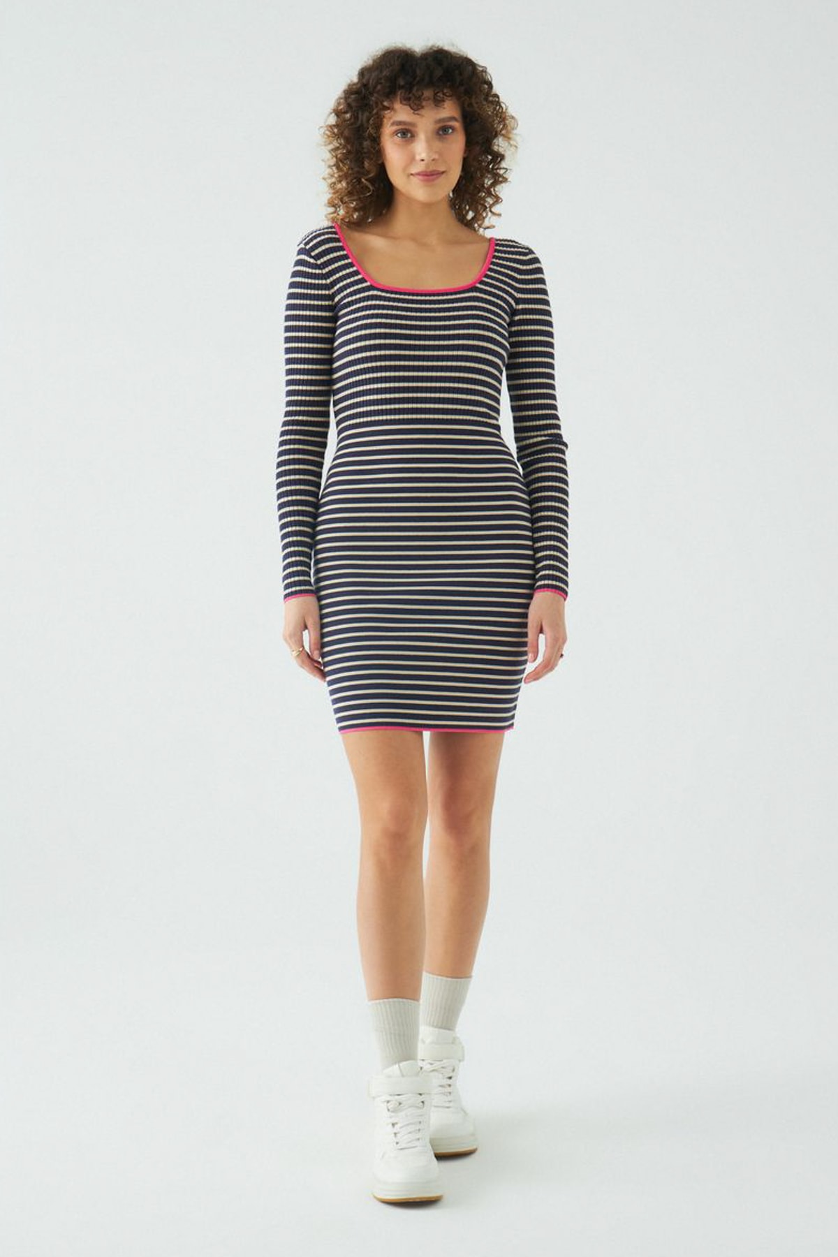Προτάσεις για Μπεζ ριγέ αθλητικό φόρεμα U-Neck από την JU