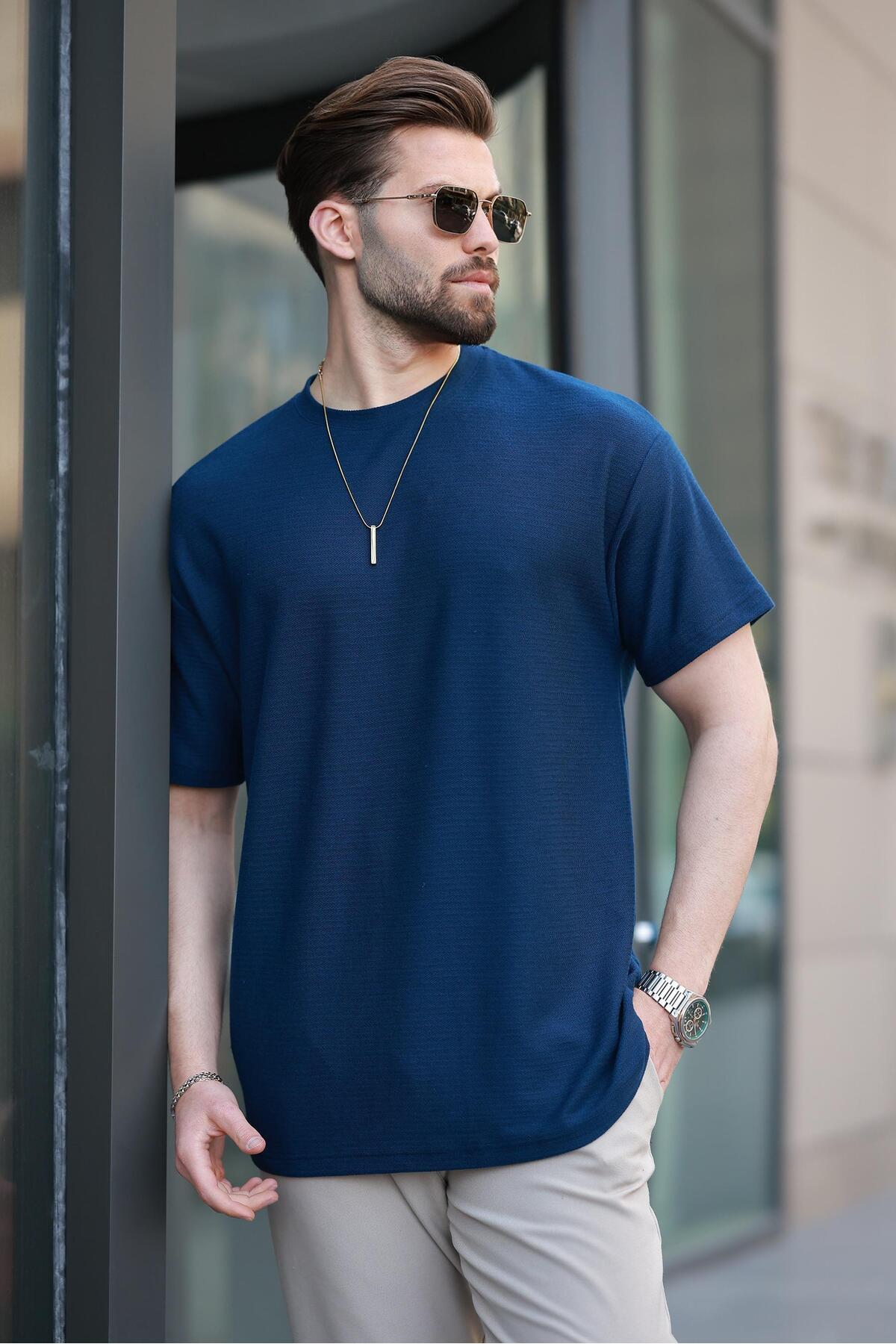 Madmext Ανδρικό μπλουζάκι Navy Blue Basic Crew Neck E7133