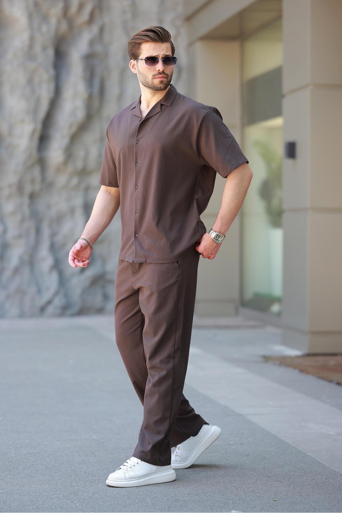 Madmext Καφέ Basic Ανδρικό Πουκάμισο Σετ E7320