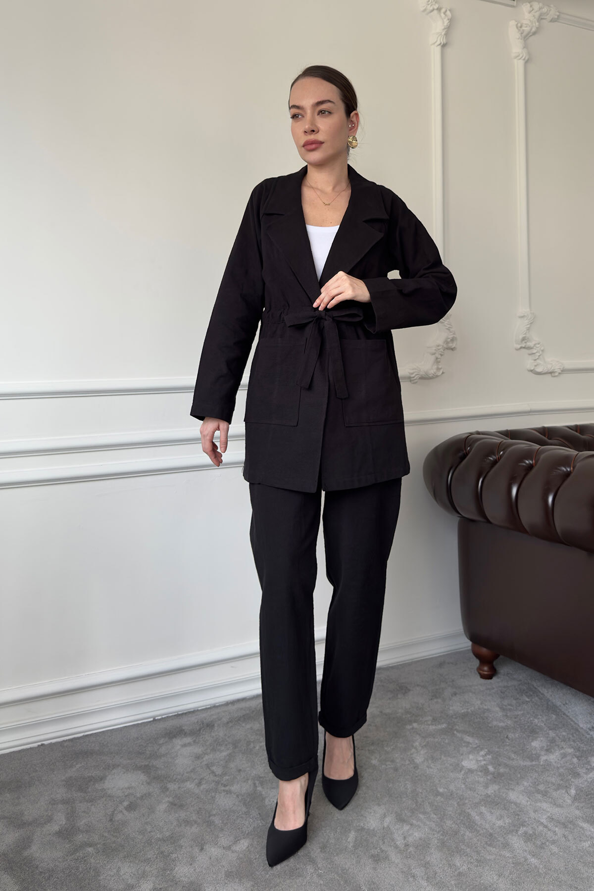 MAGARDE Μαύρο Λινό Σετ με Δέσιμο