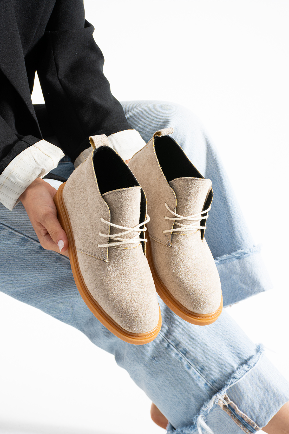 Προτάσεις για Μπότες με κορδόνια σε μπεζ σουέντ (αντιολισθητικές) από την Moda Devrin