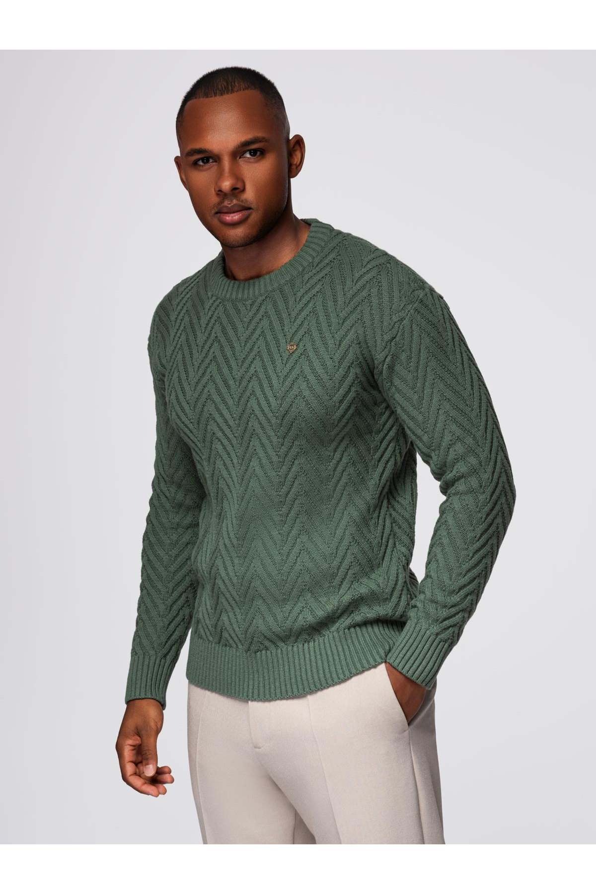 Προτάσεις για Ανδρικό Πουλόβερ με Ζιγκ-ζαγκ Twill - Θαμπό Πράσινο V2 OM-SWSW-0147 από την OMBRE