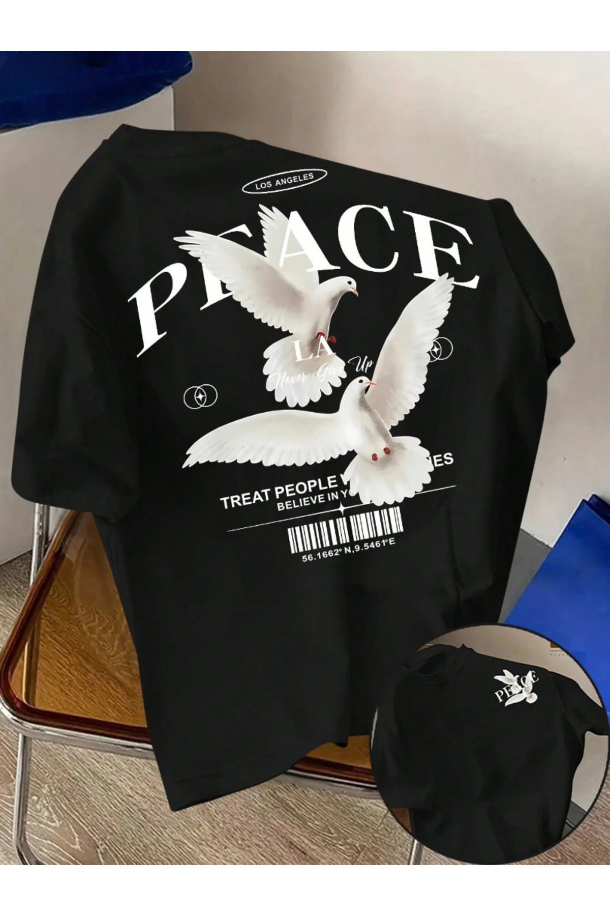 one button Μπλουζάκι Unisex Peace Designed Basic Crew Neck Regular, 100% βαμβάκι