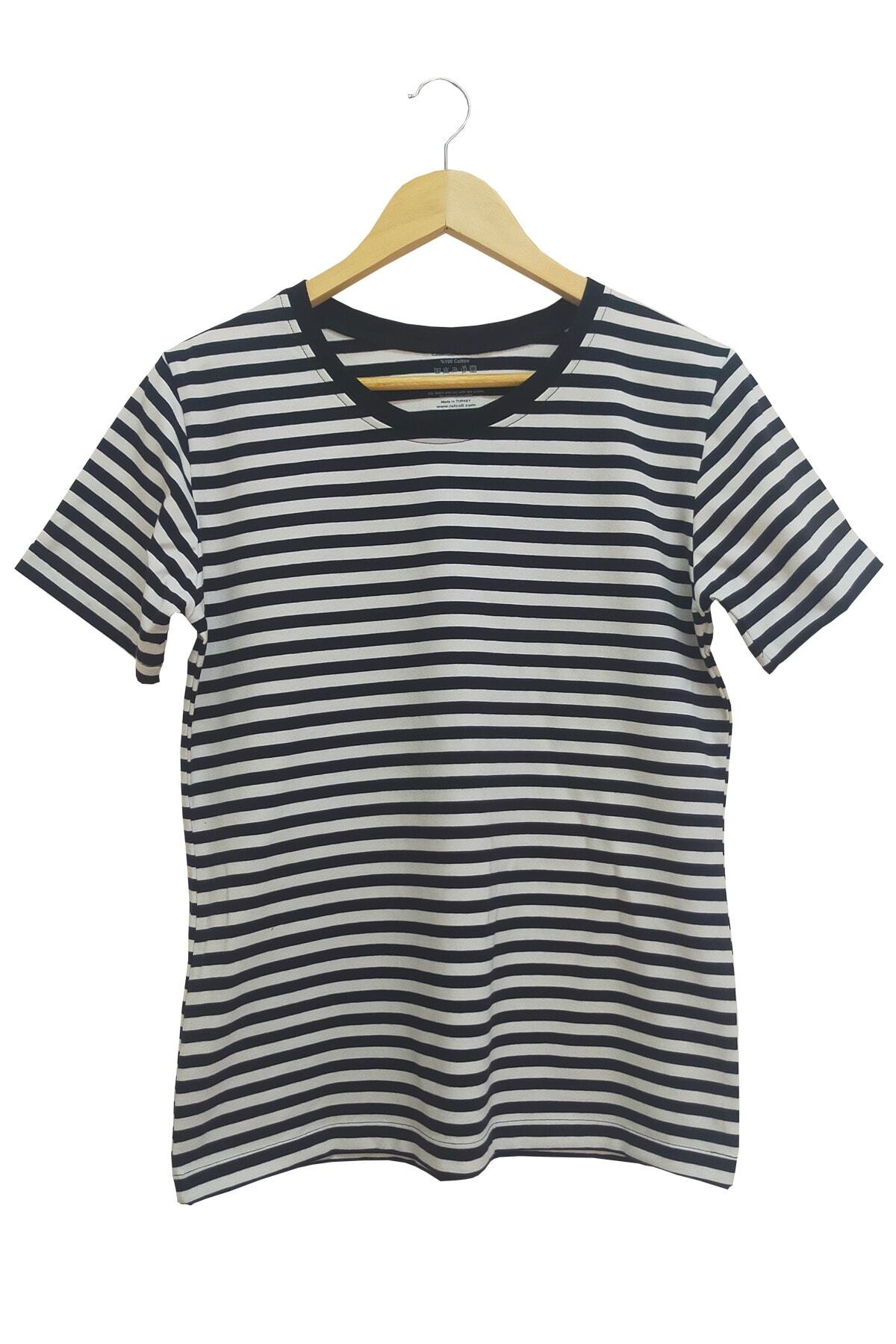 Προτάσεις για Μαύρο και άσπρο ριγέ Basic Crew Neck πλεκτό μπλουζάκι από την Raf Coll