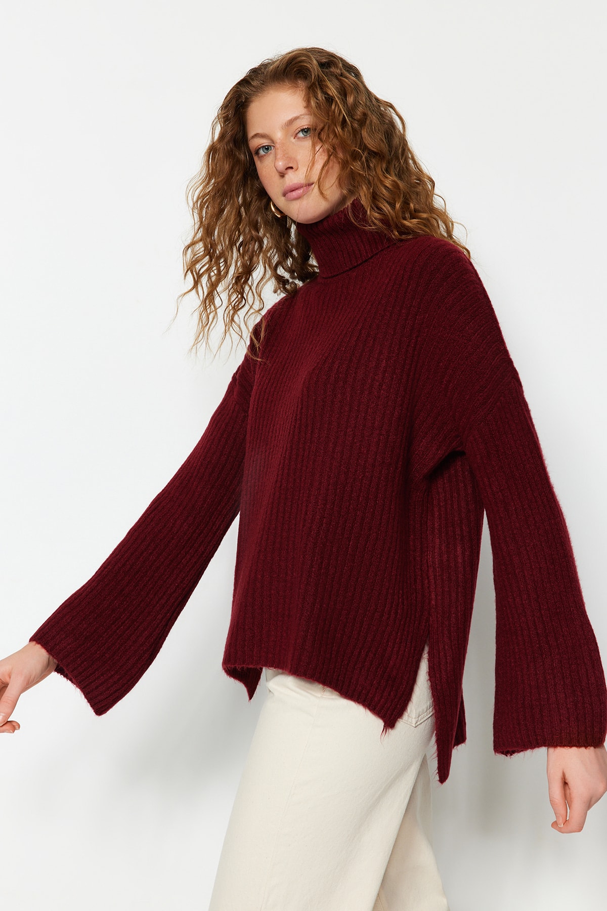 Trendyol Collection Πλεκτό πουλόβερ με μαλακή υφή μπορντό TWOAW23KZ0054