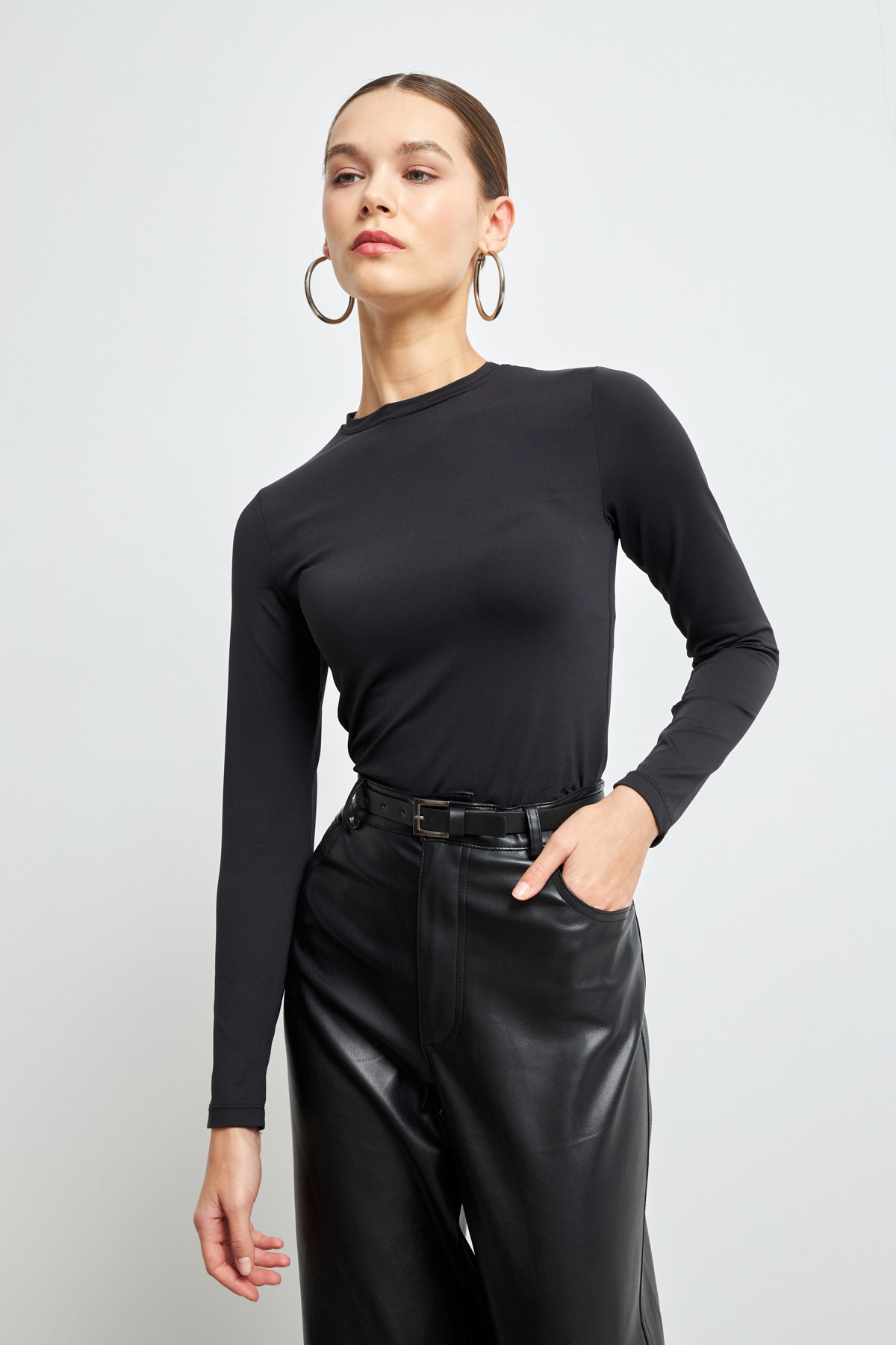 Yefrastore Μαύρη εξαιρετικά μαλακή ελαστική μπλούζα με λαιμόκοψη Basic