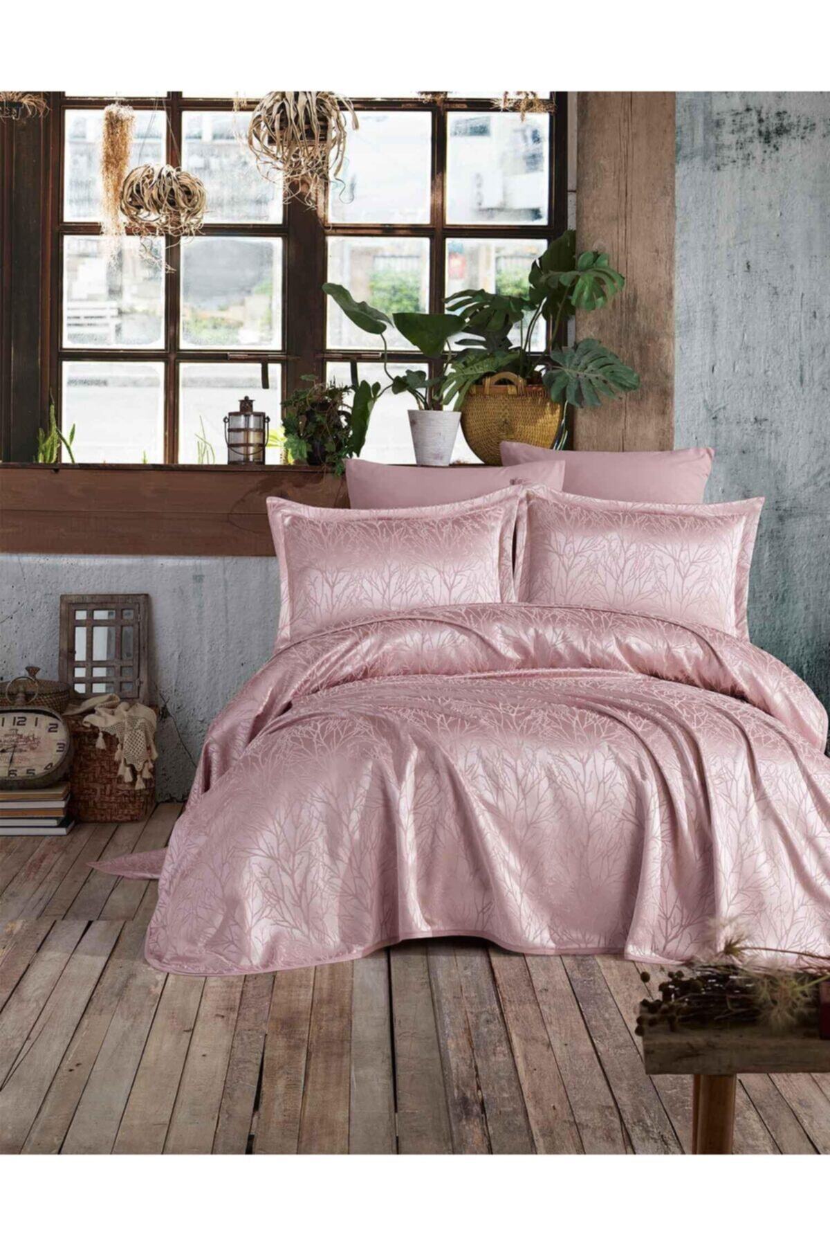 Elart Yatak Örtüsü Takımı Çift Kişilik Jakar Şönil Kumaş Mucize Gülkurusu