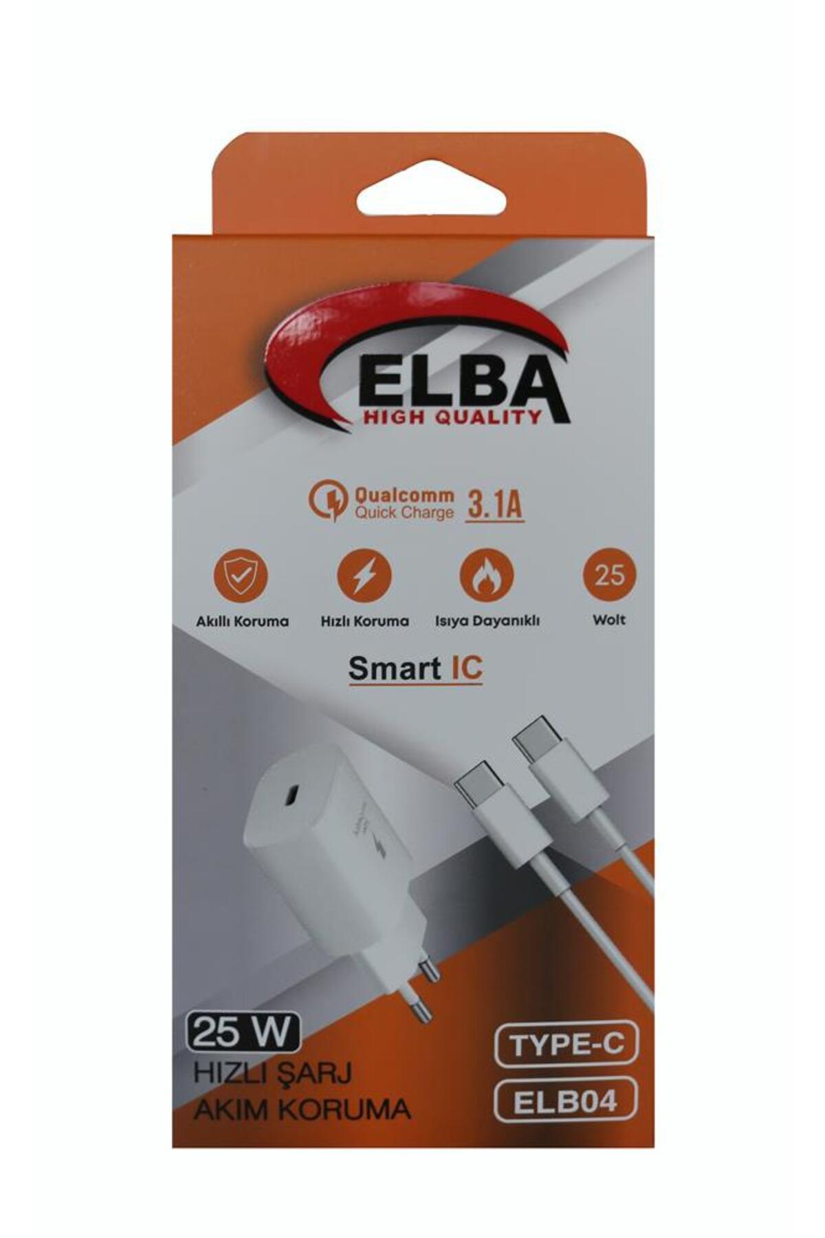 ELBA Type-c Beyaz 25w Typc-e Ev Şarj Kafa 1mt Type-c To Type-c Kablo 3.1 Hızlı Şarj | Elb04-pd-25w