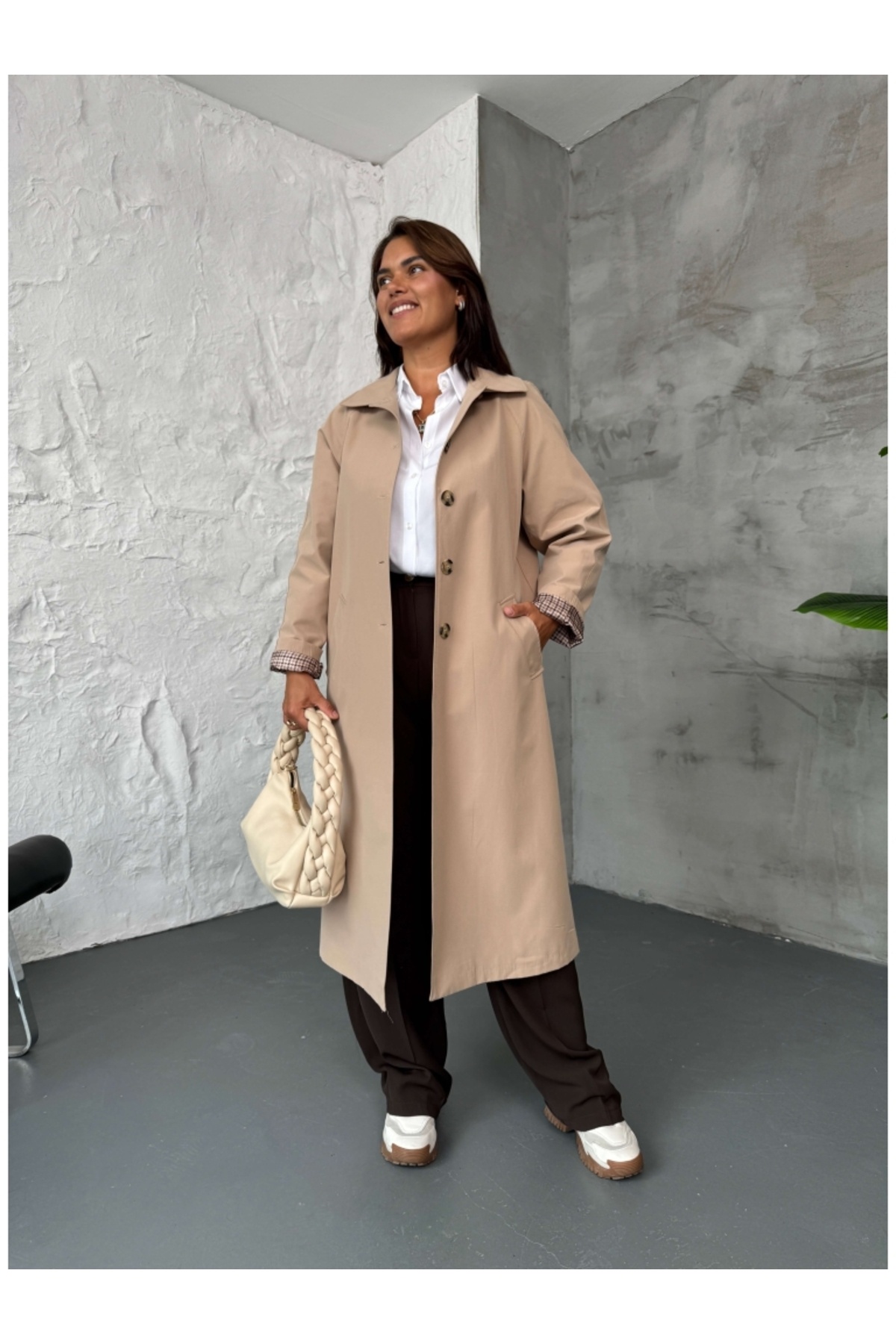 Elif Özbey Butik Camel Ekose Detaylı Trenç Özellikleri