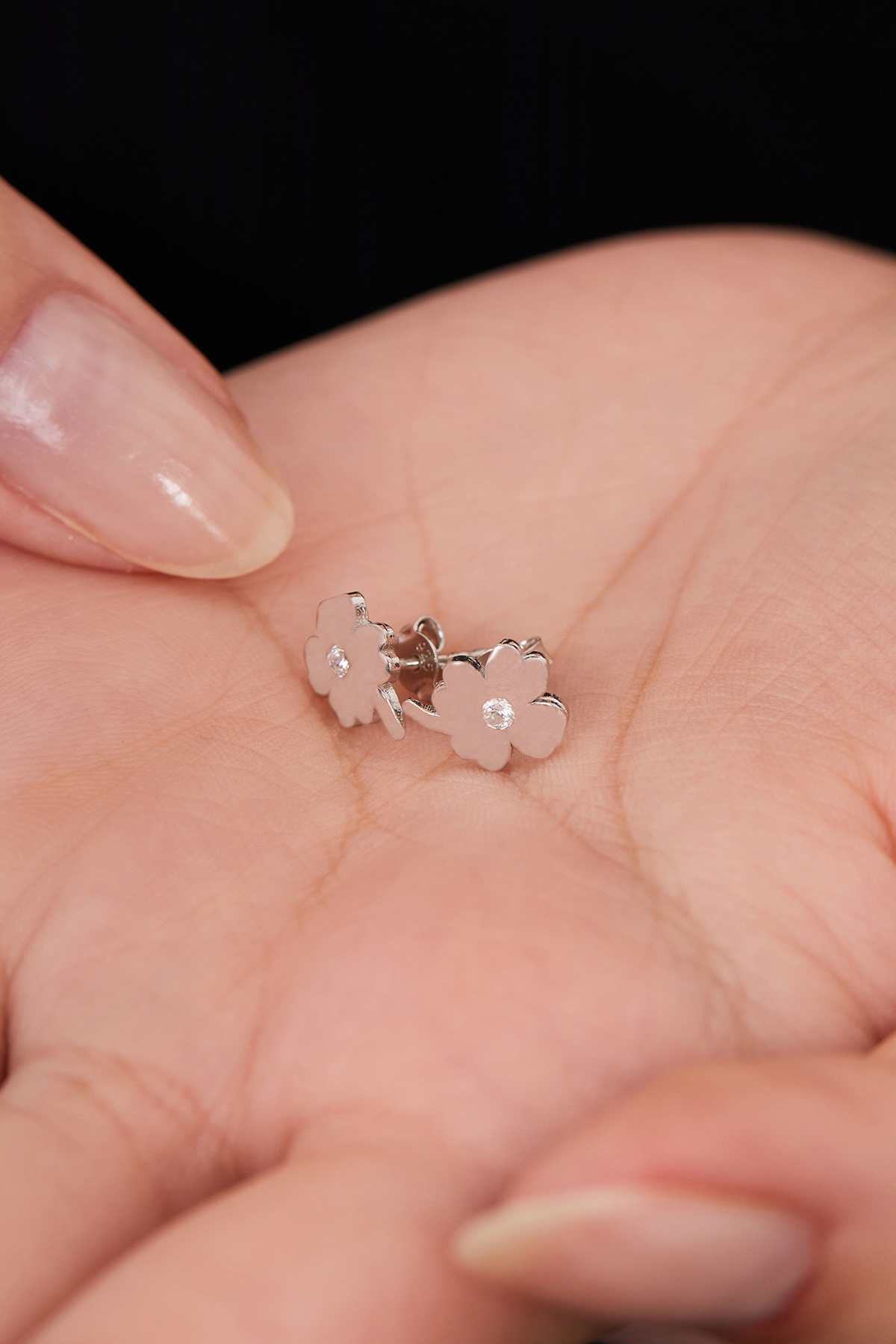 Elika Silver 925 Ayar Gümüş Tek Taşlı Yonca Model Küpe