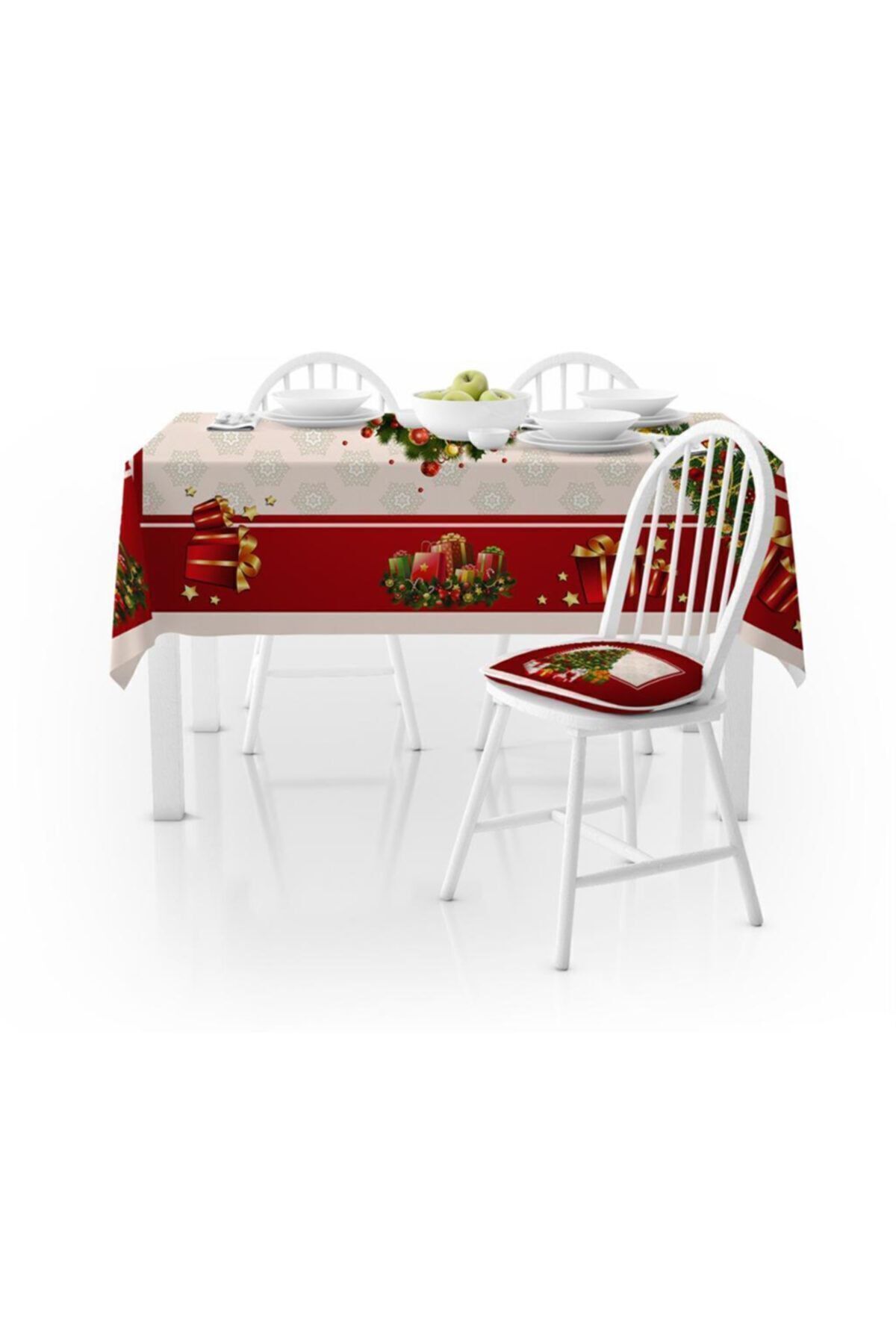 Else Halı Else Yılbaşı Süsleri Desenli Dekoratif Leke Tutmaz Masa Örtüsü Ps-6