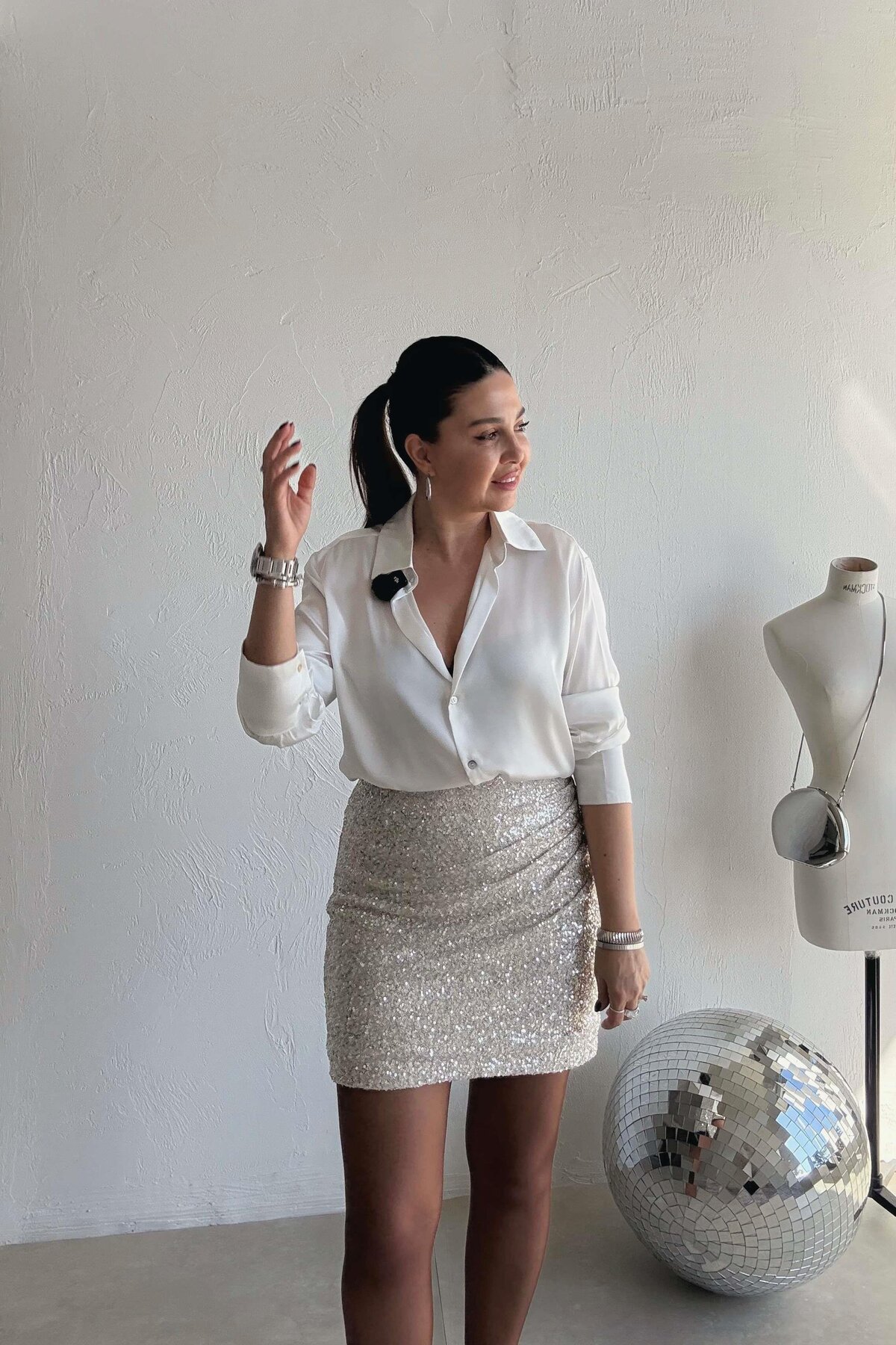 ELVAN TOLON Bej Drapeli Payet Etek Özellikleri