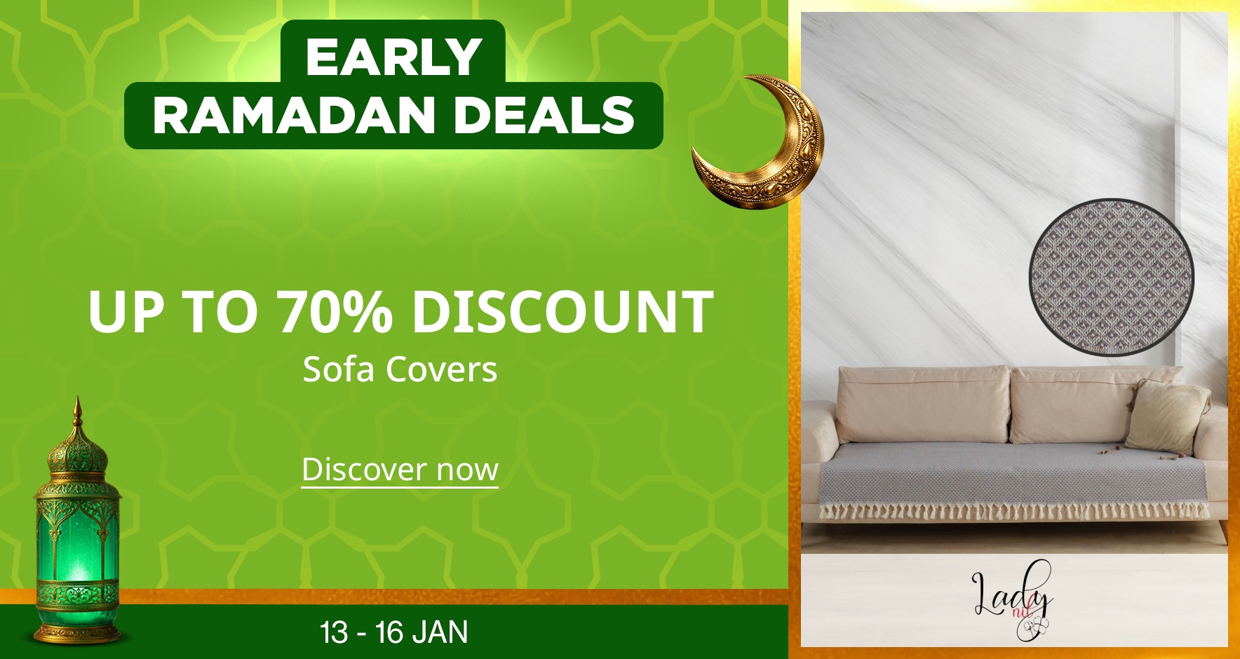 LADYNİL Ecru Star Patterned Sofa Cover for Seating - 115x200