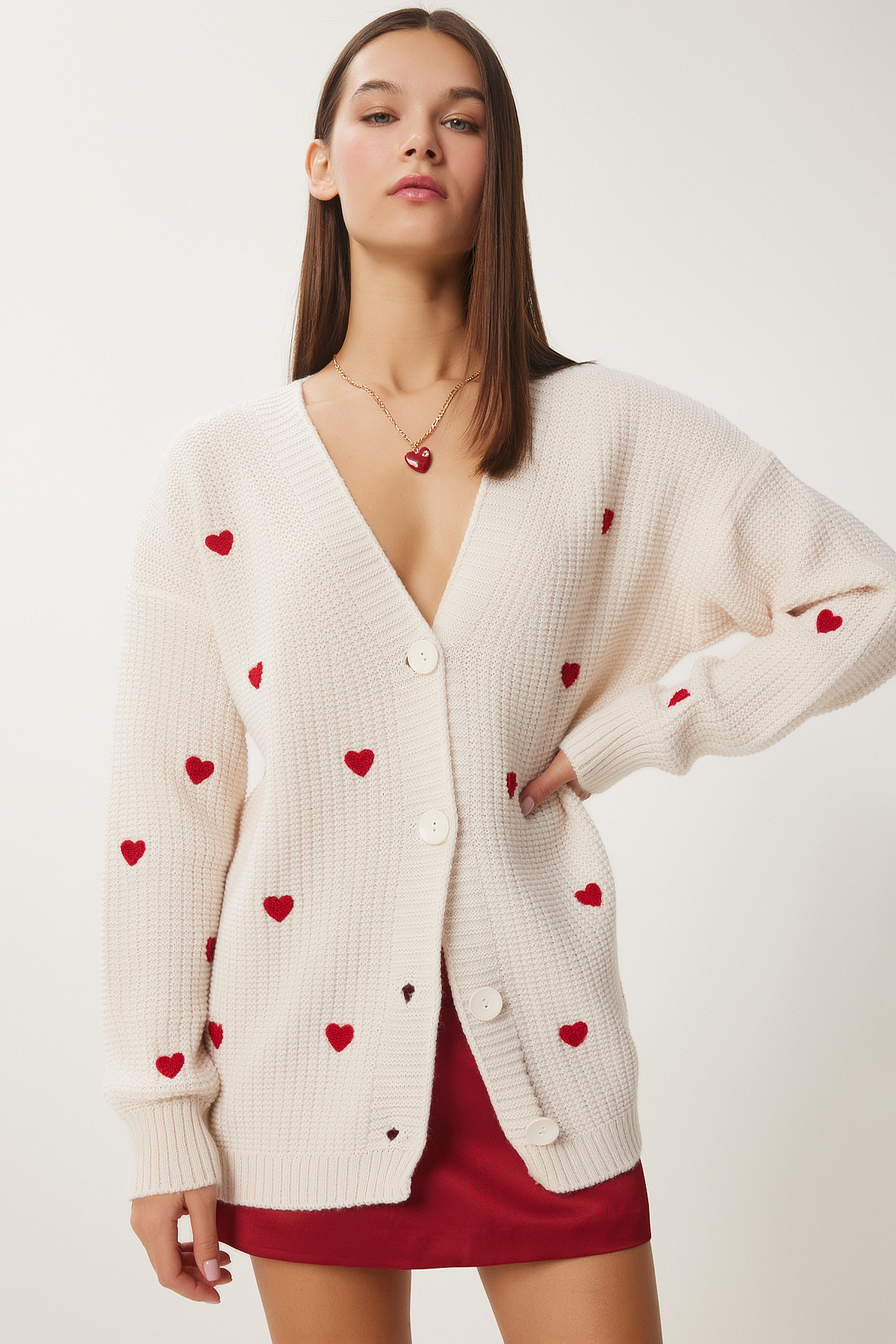 Happiness İstanbul Women's Dark Cream Boucle Knitwear Jacket Cardigan YY00117
