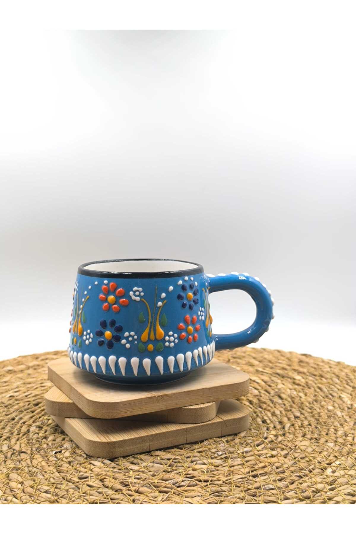 3DreaMaker 2 Pieces Handmade Ceramic Mug with Embossed Pattern