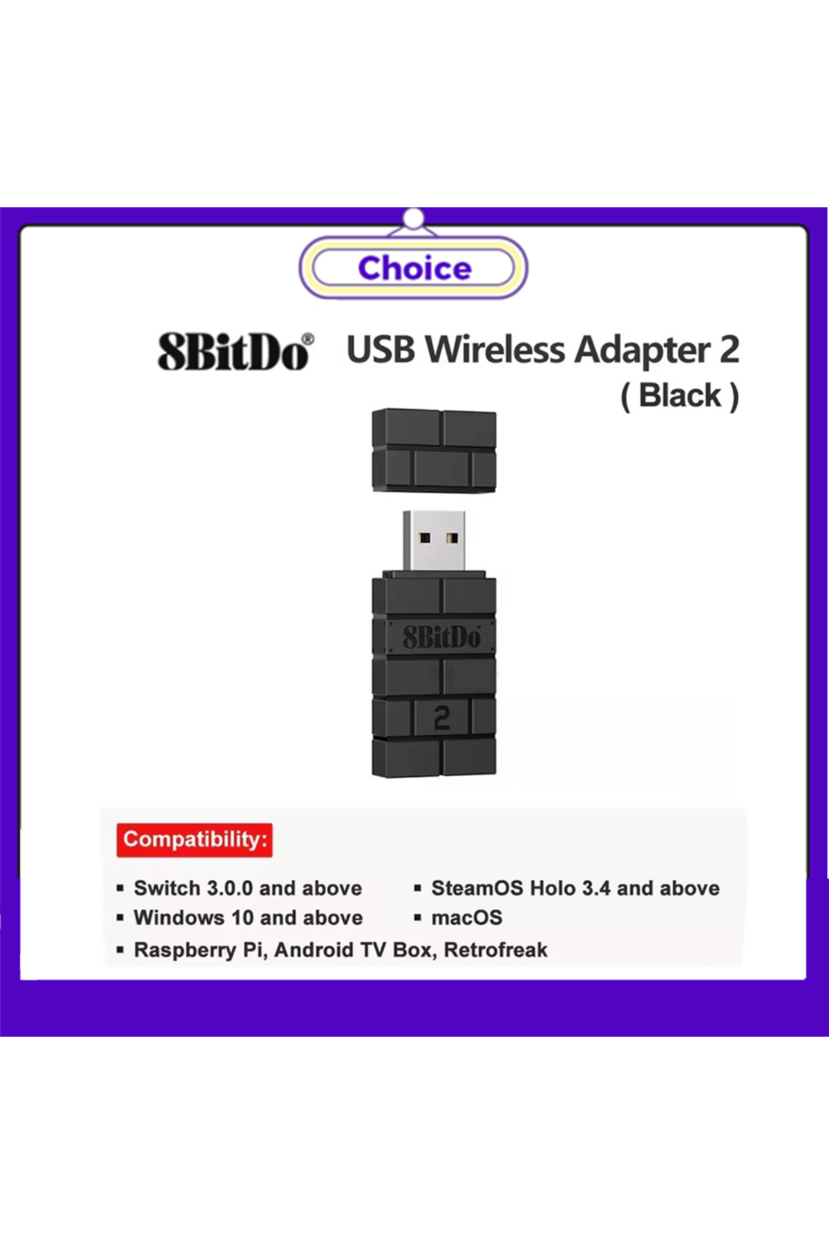 8Bitdo Black Bluetooth USB RR Adapter Wireless for Switch Windows Mac Raspberry Pi Switch 2 Lite O features