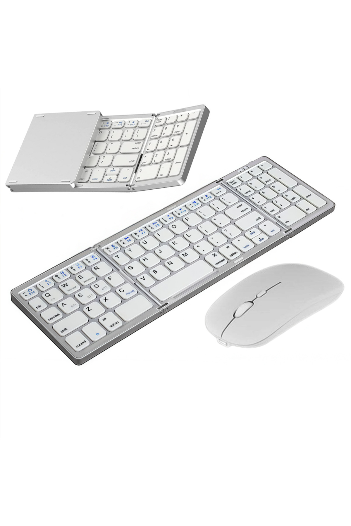 A ATAB Foldable, universal, tri-fold wireless keyboard with free wireless mouse, Bluetooth multi-device features