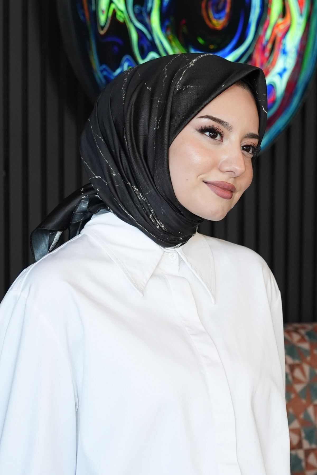 AFVENTE Marble Pattern Black Cotton Scarf