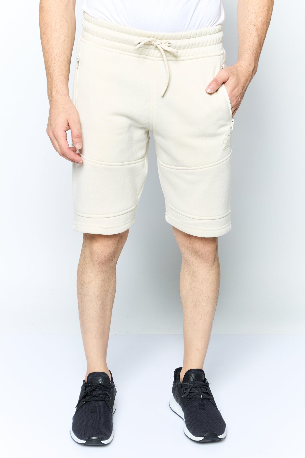 Akademiks Men Brand Logo Basic Shorts, Beige features