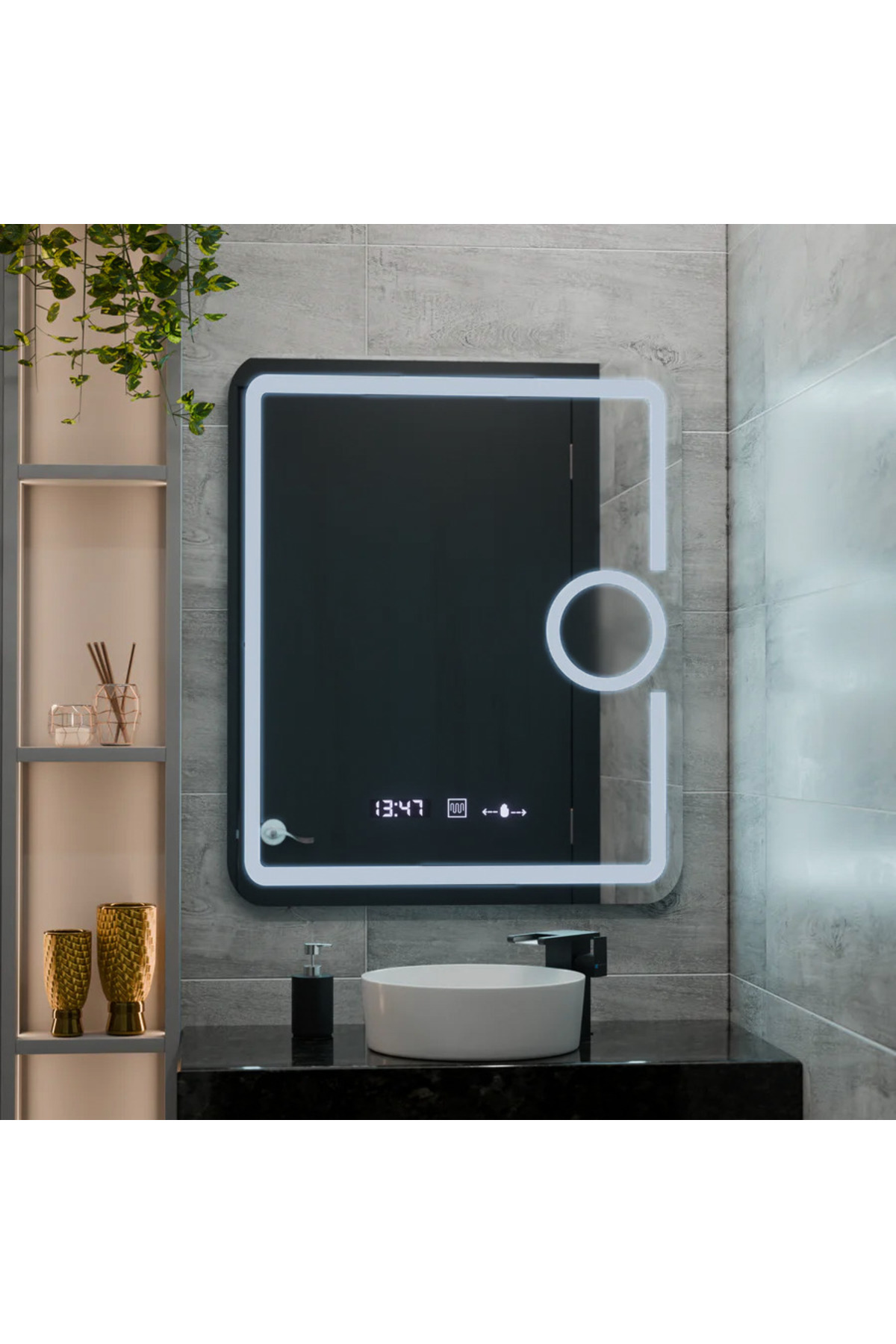 Alessandro DESIGN Rectangular LED Mirror, 60x80cm, Eclat MotionGlow Marcello, Clock & Thermometer features