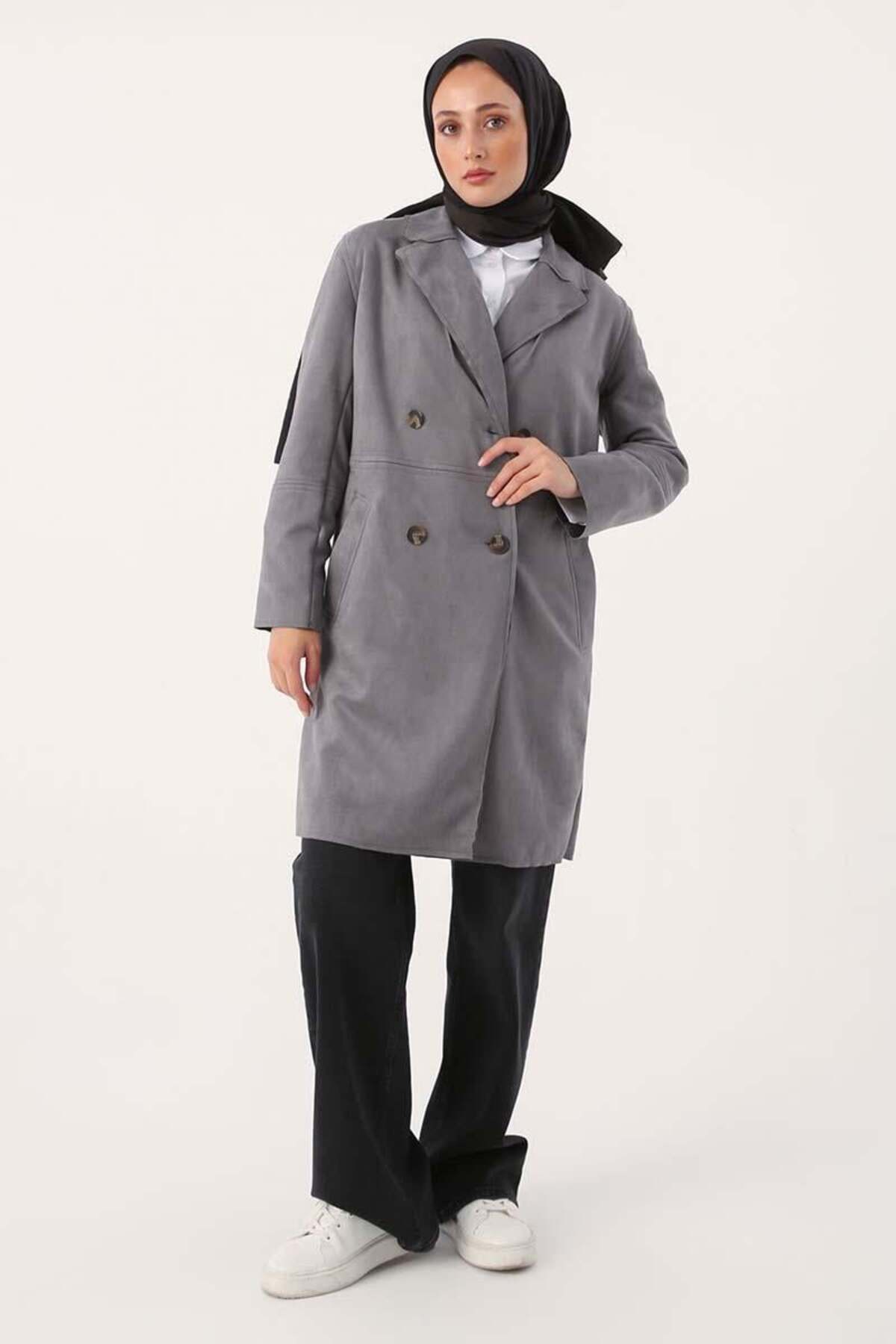 ALLDAY Gray-Suede Double Breasted Blazer Jacket