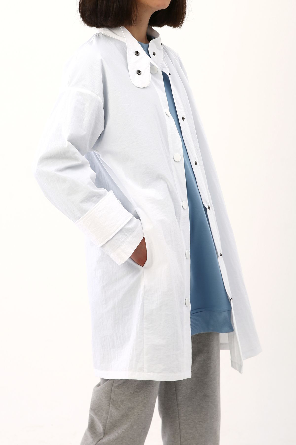ALLDAY White Asymmetrical Snap Cap features
