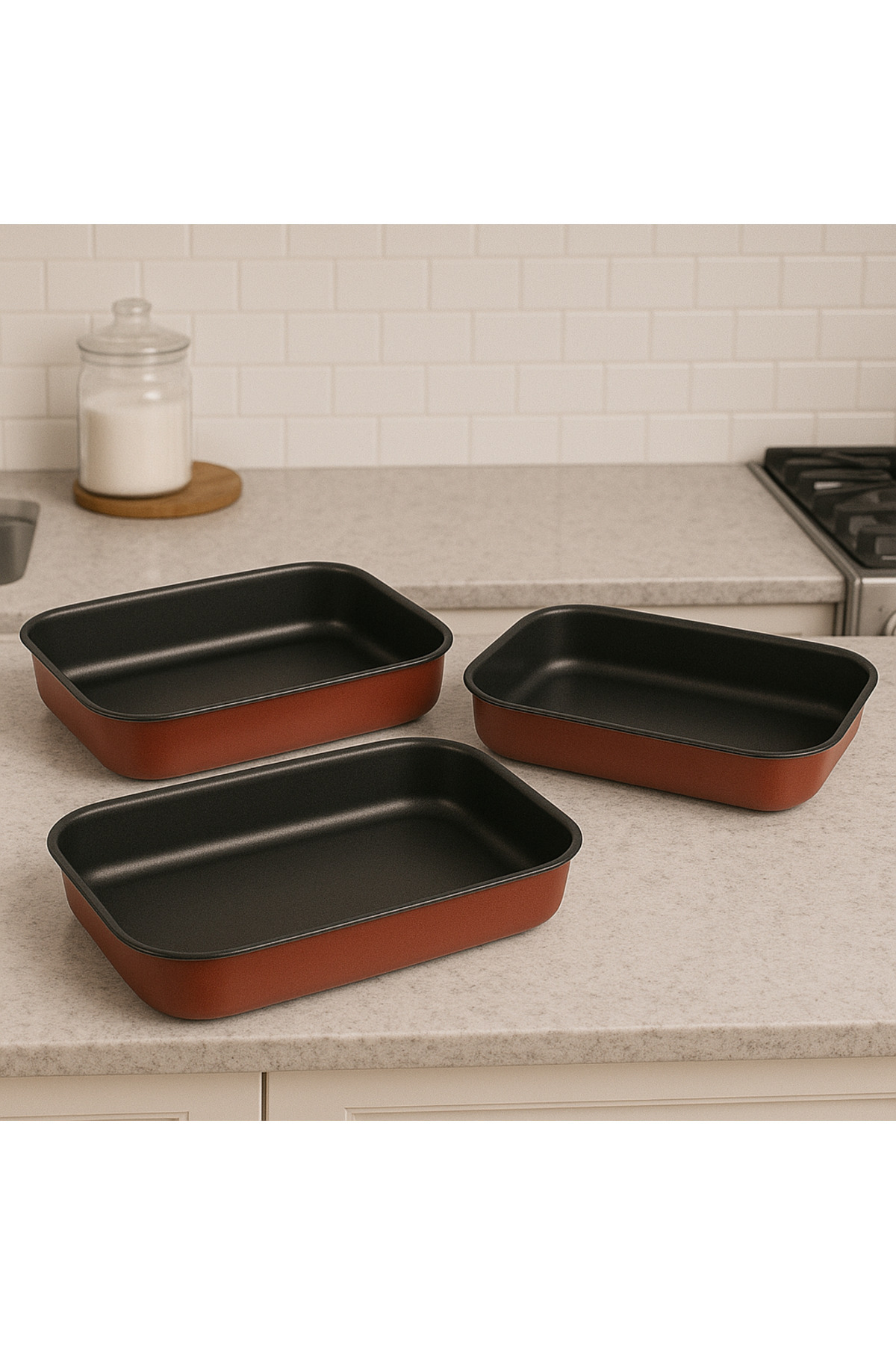 ALSAIF 3 Pieces Non Stick Rectangular Baking Pan Set, 37,41,45 Cm features