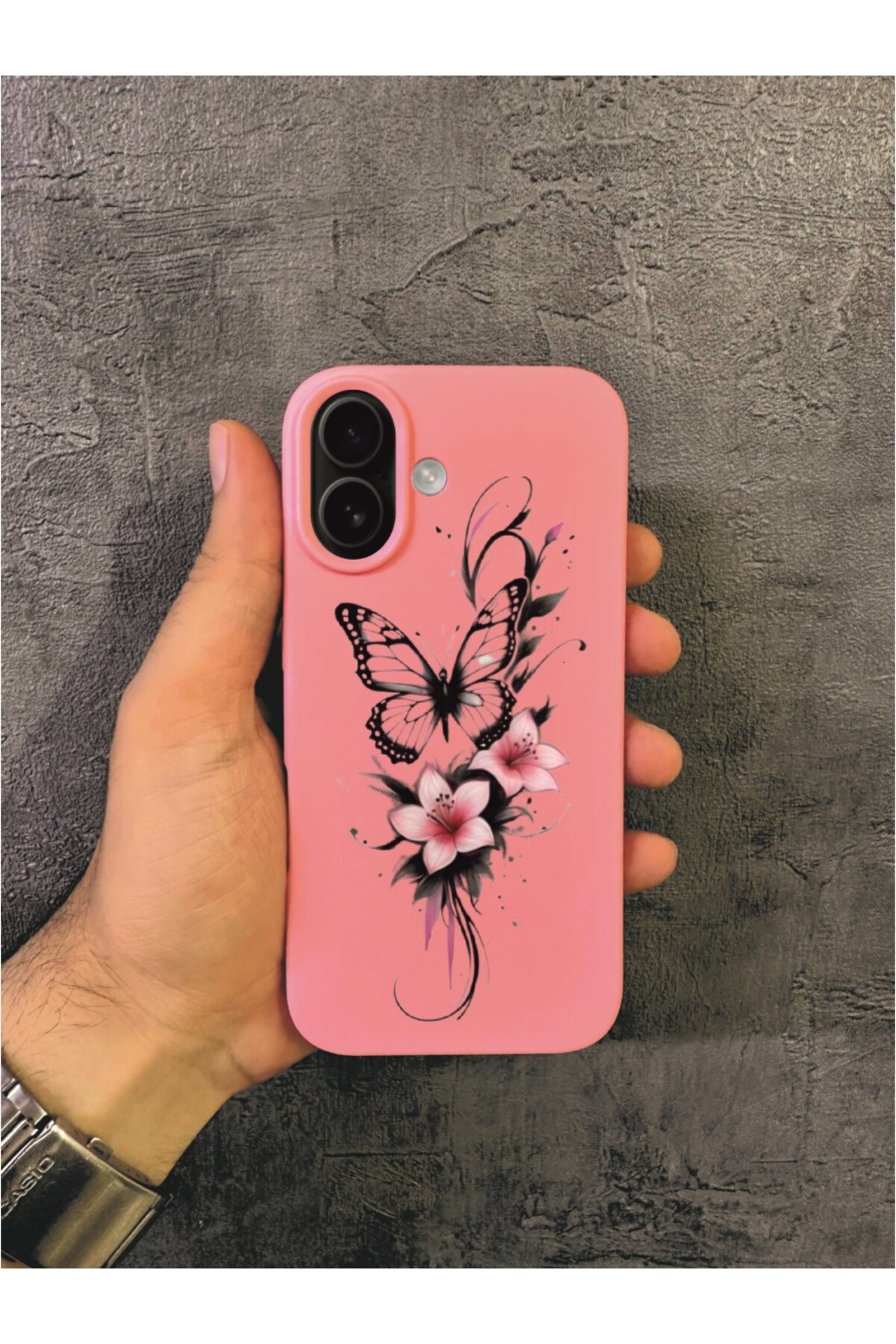 ALYACEPSTORE CASE iPhone 16 Plus Compatible Butterfly Patterned Pink Case features