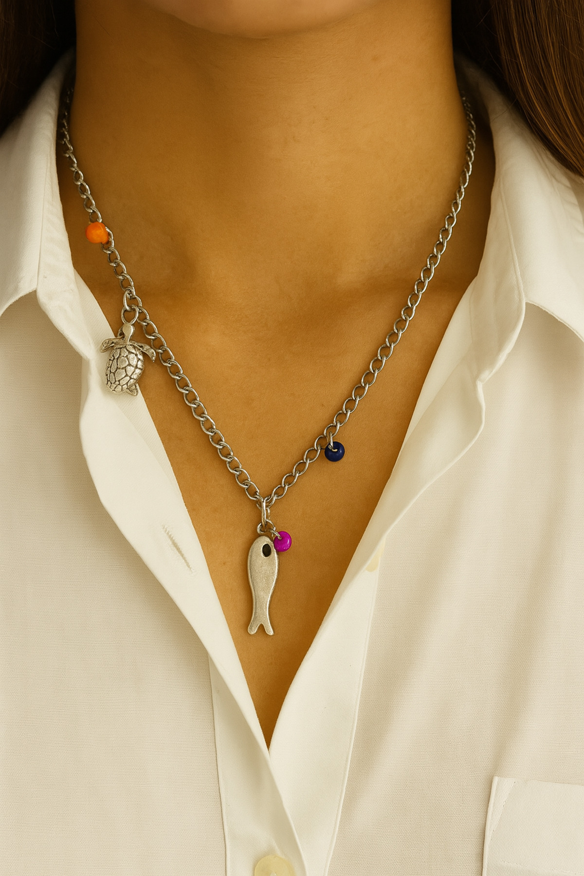 andela Fish and Loggerhead Pendant features