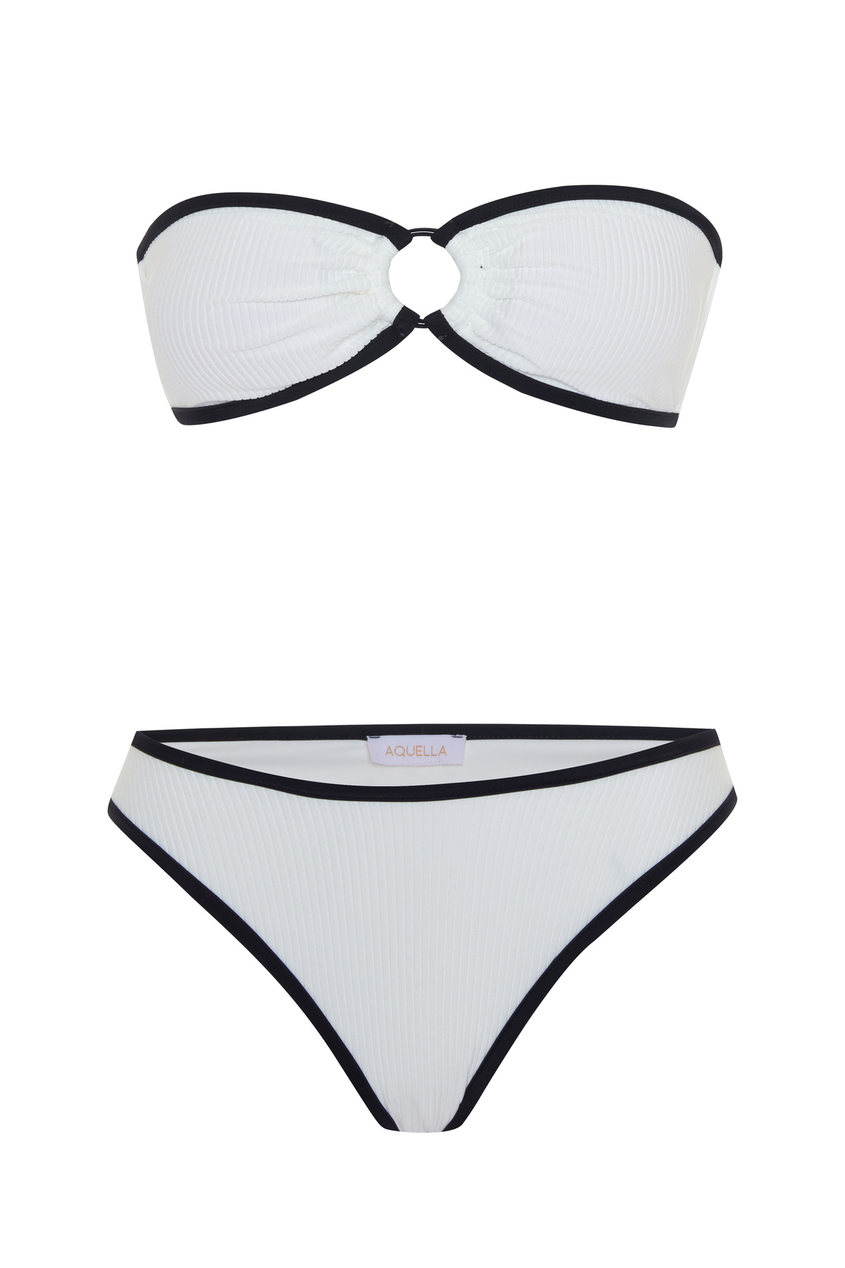 AQUELLA Ribbed White Strapless Bikini Set features
