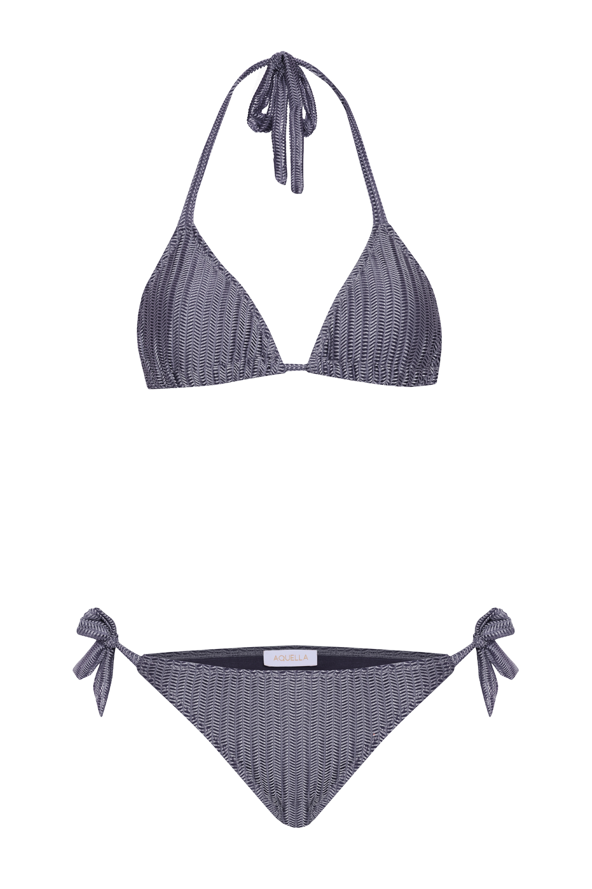 AQUELLA Zigzag Patterned Anthracite Tie-Up Bikini Set features