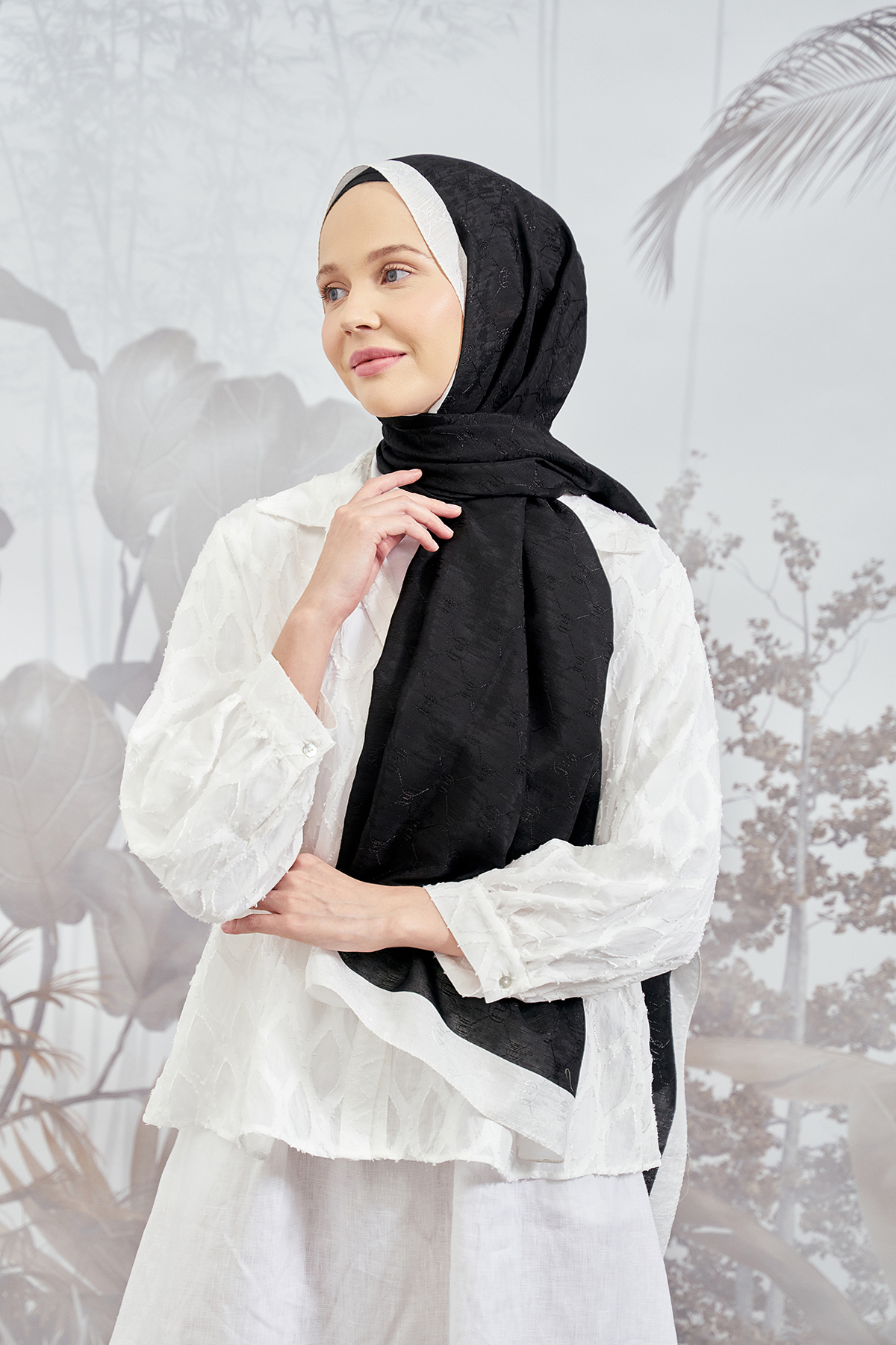 ARMANDA Chain Monogram Patterned Shawl 3042-Black features