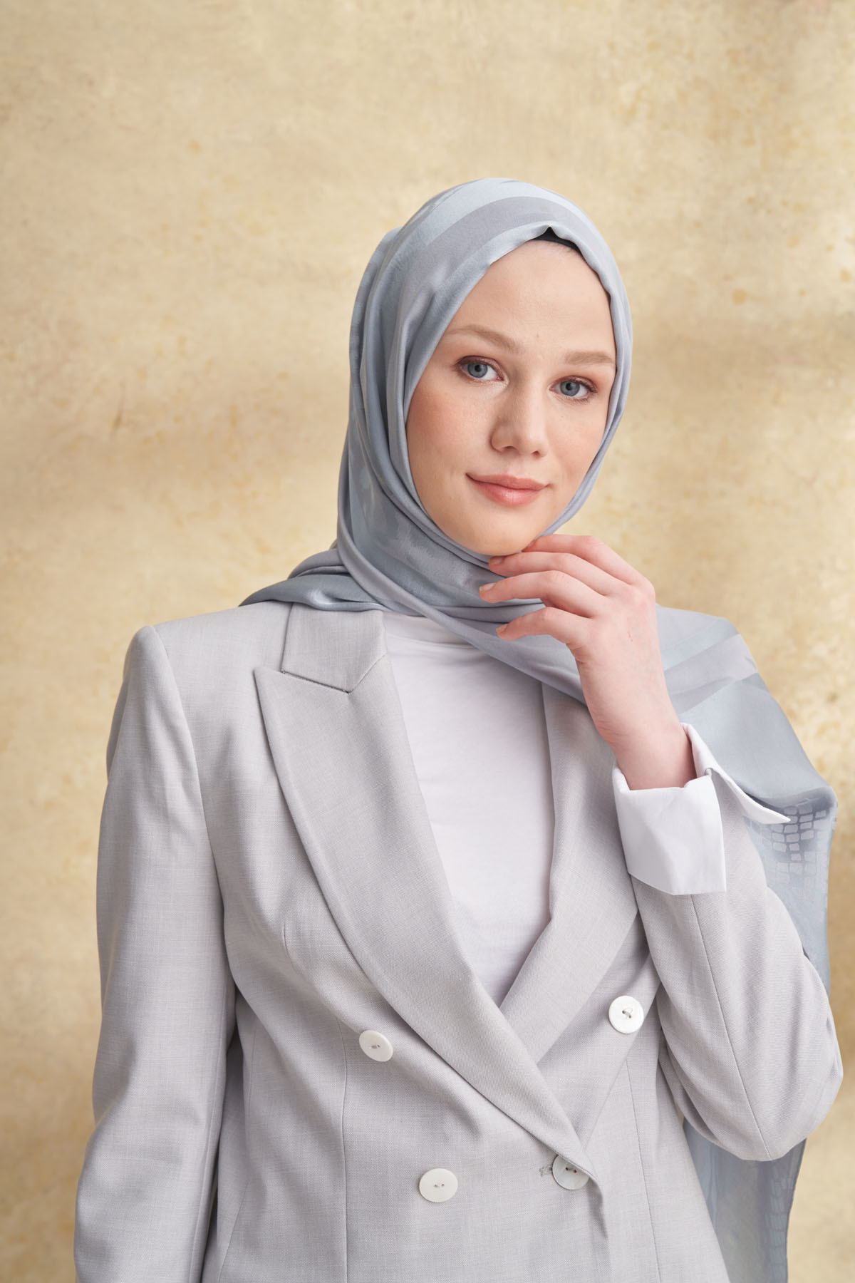 ARMANDA Fiori Jacquard Leopard Mix Pattern Shawl - Silver