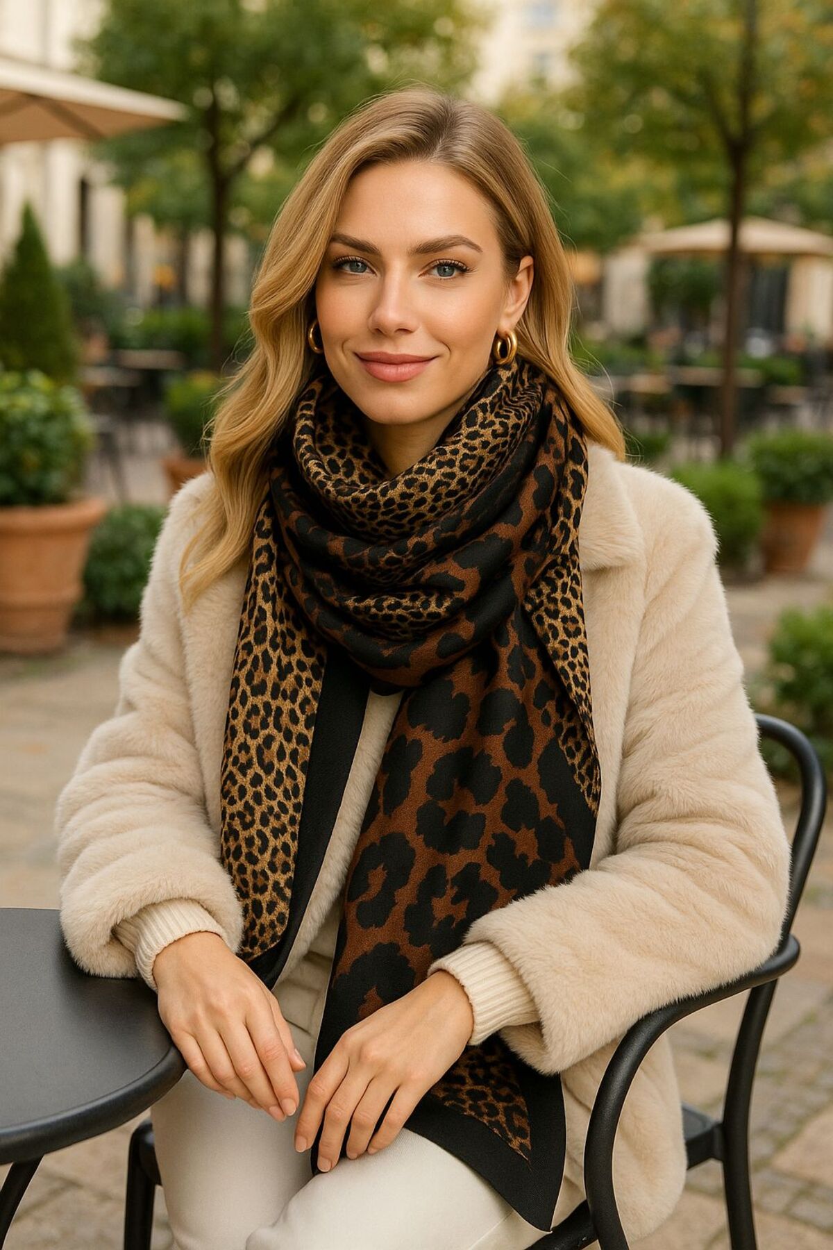 Axesoire 13955 Patchwork Leopard Patterned Brown Shawl features