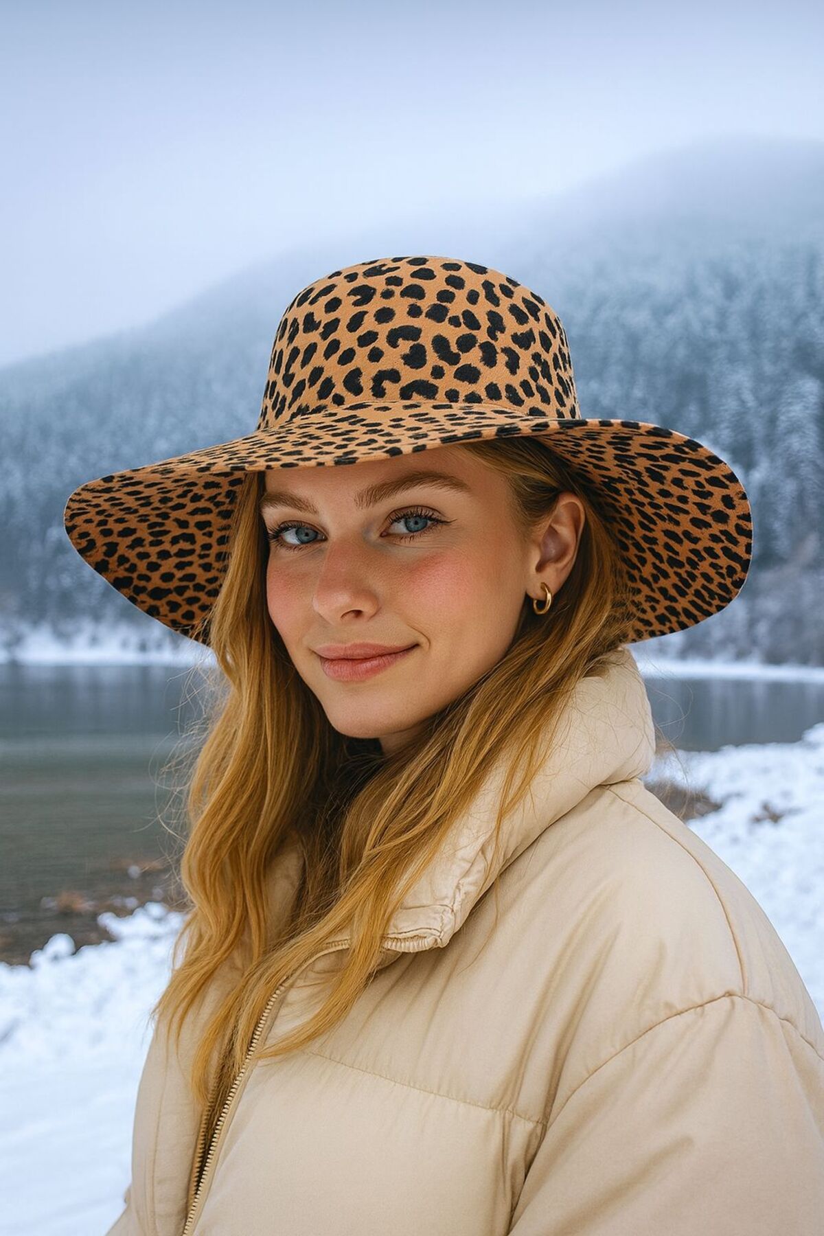 Axesoire 14763 Leopard Pattern Wide Hat features