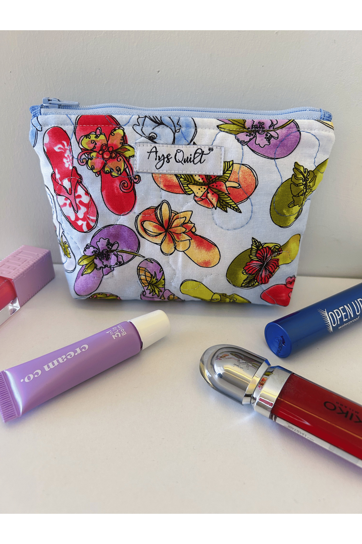 Ays Quilt Blue Patterned Small Size Makeup Bag features