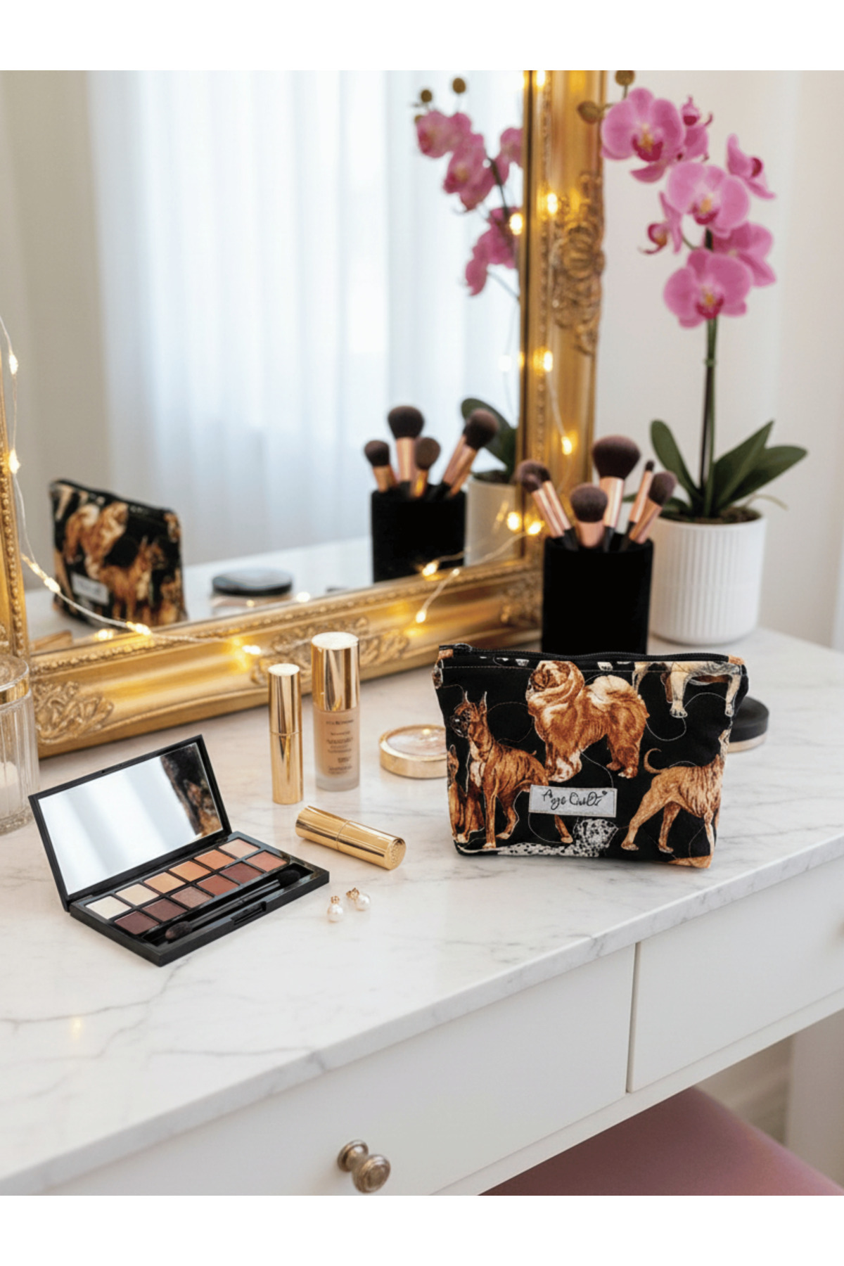 Ays Quilt Dog Patterned Makeup Bag
